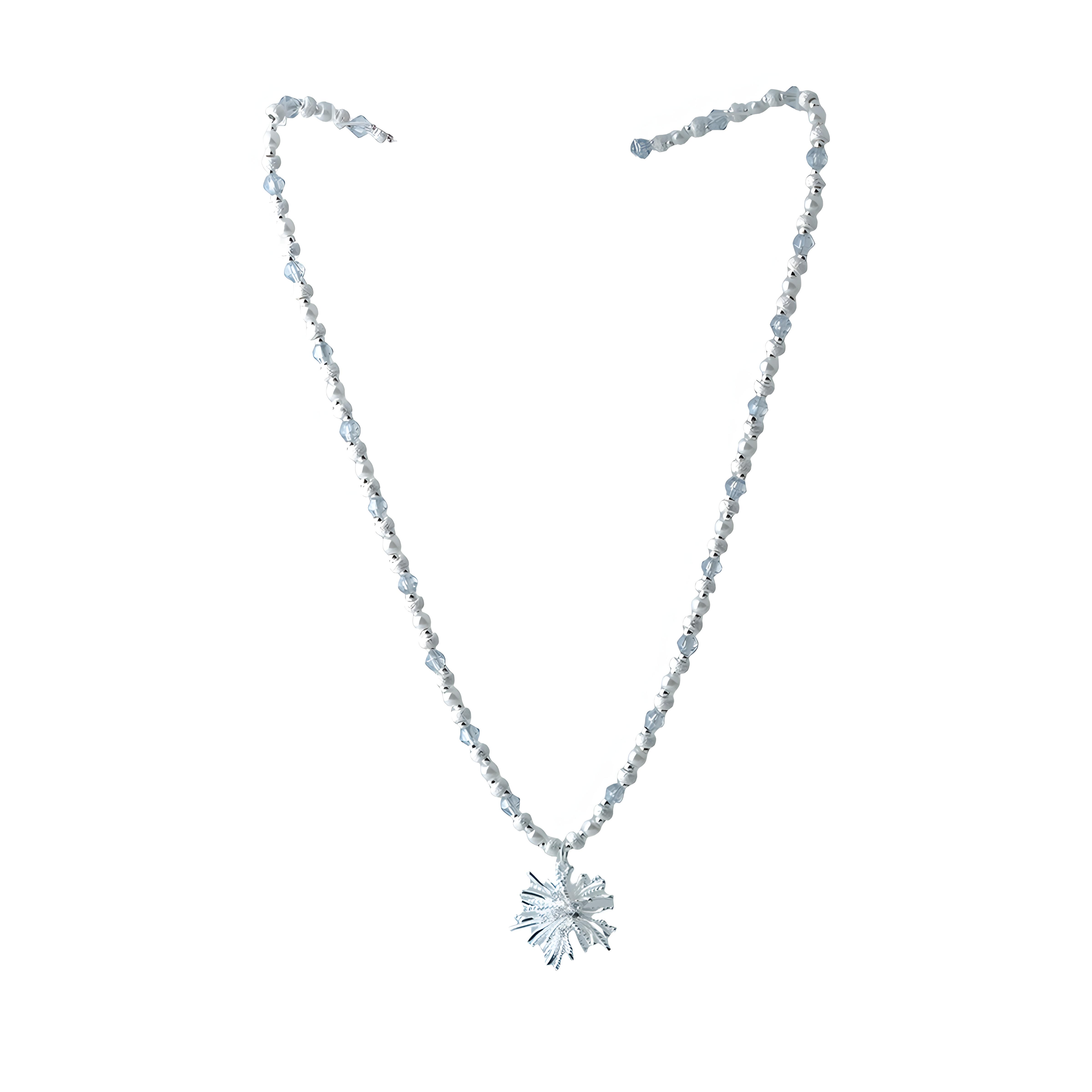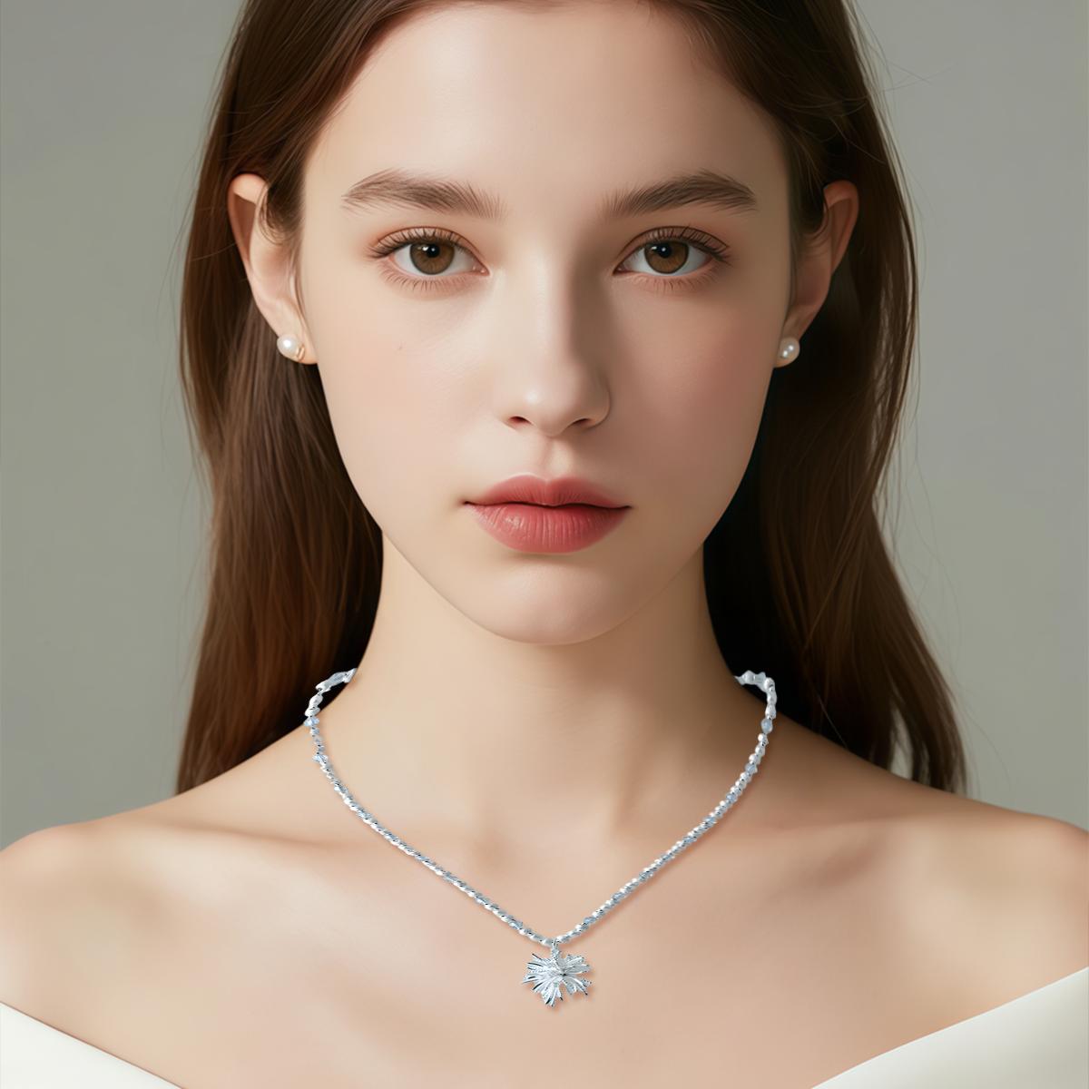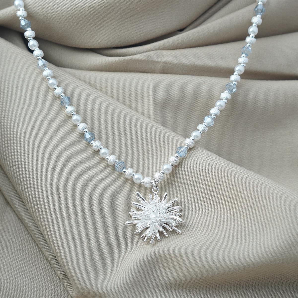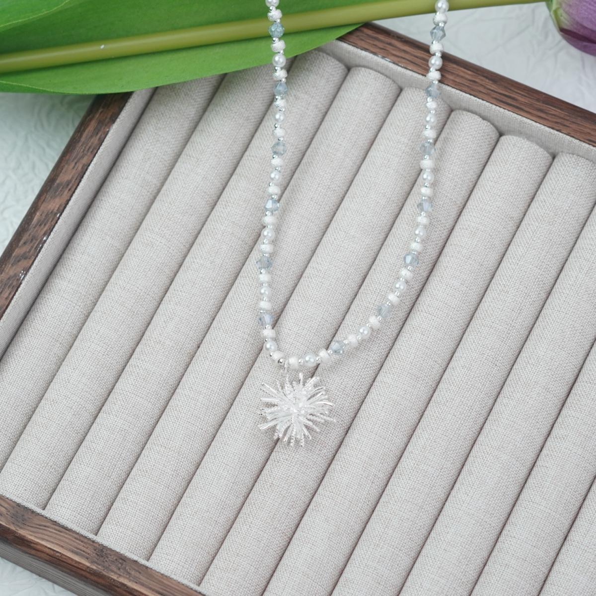 Design & Materials: Crafted with silver alloy beads and light blue crystal beads, this necklace features a delicate silver alloy coral pendant, blending fresh tones with subtle elegance. The combination of smooth beads and the unique coral charm adds a touch of nature-inspired beauty.
