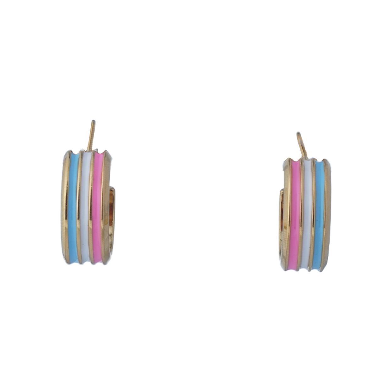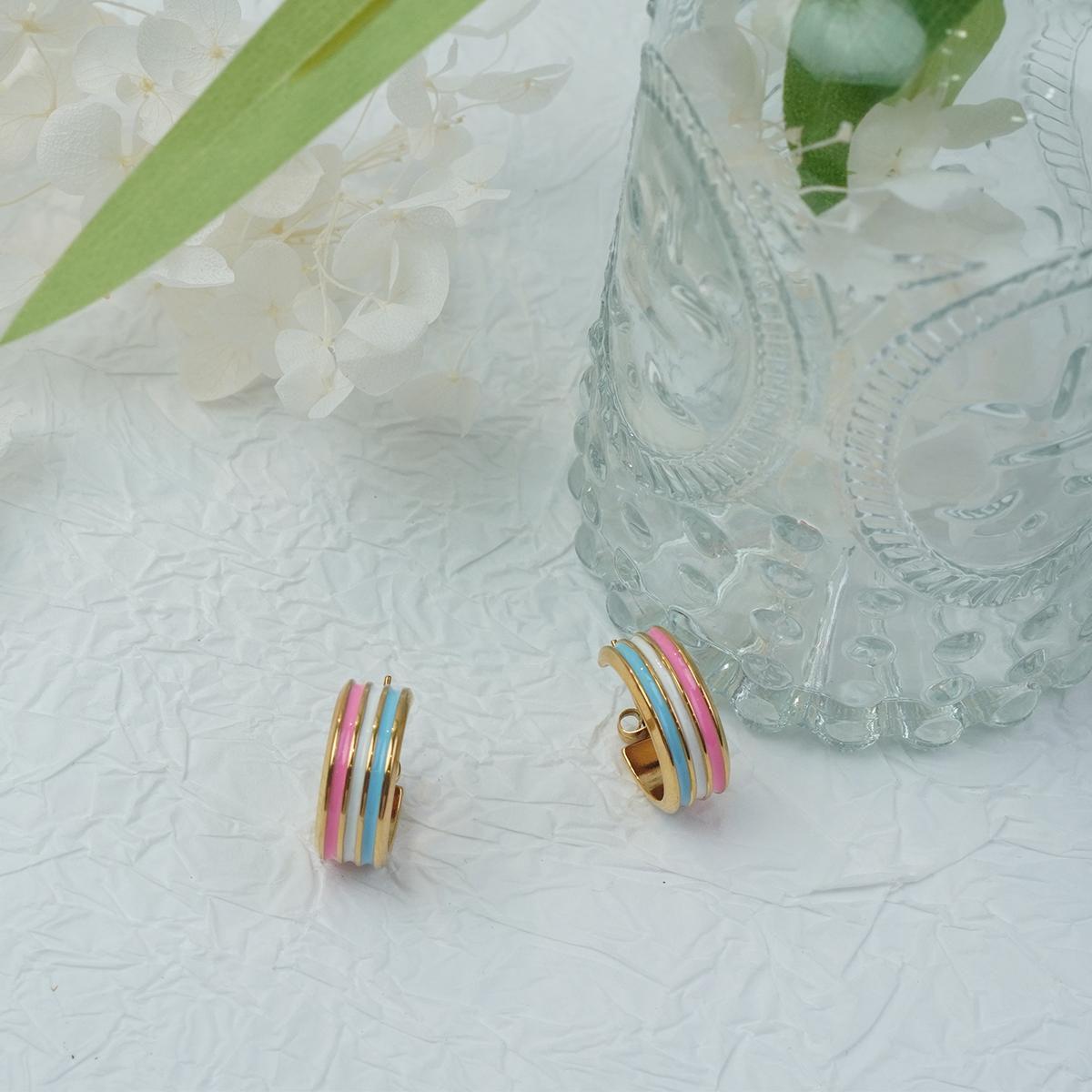 Design & Materials: These hoop earrings feature an alloy base with a gold - plated finish, giving a delicate and textured look. The colorful parts use enamel, which is bright, firmly attached, and retains its vivid color. Blue, white, and pink enamel stripes are inlaid on the classic hoop design, adding a fresh and lively touch. The 925 silver needle ensures comfort.
