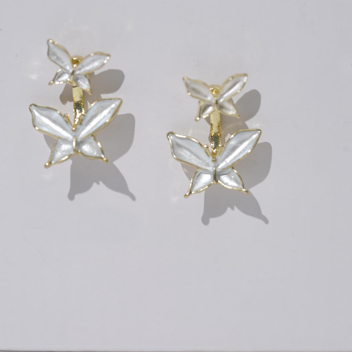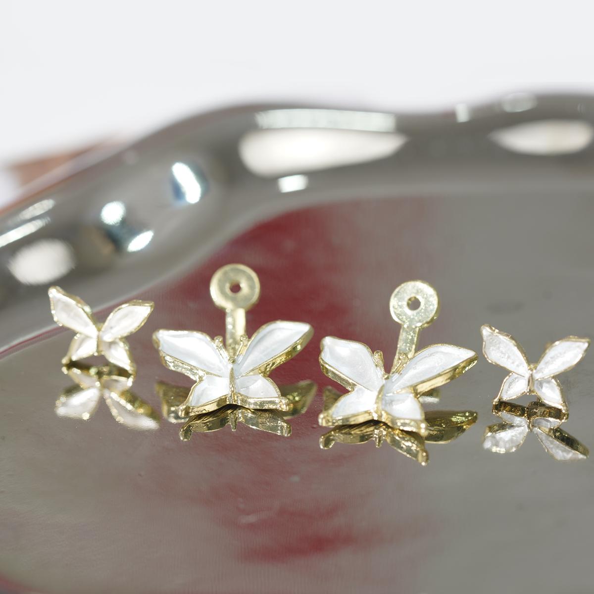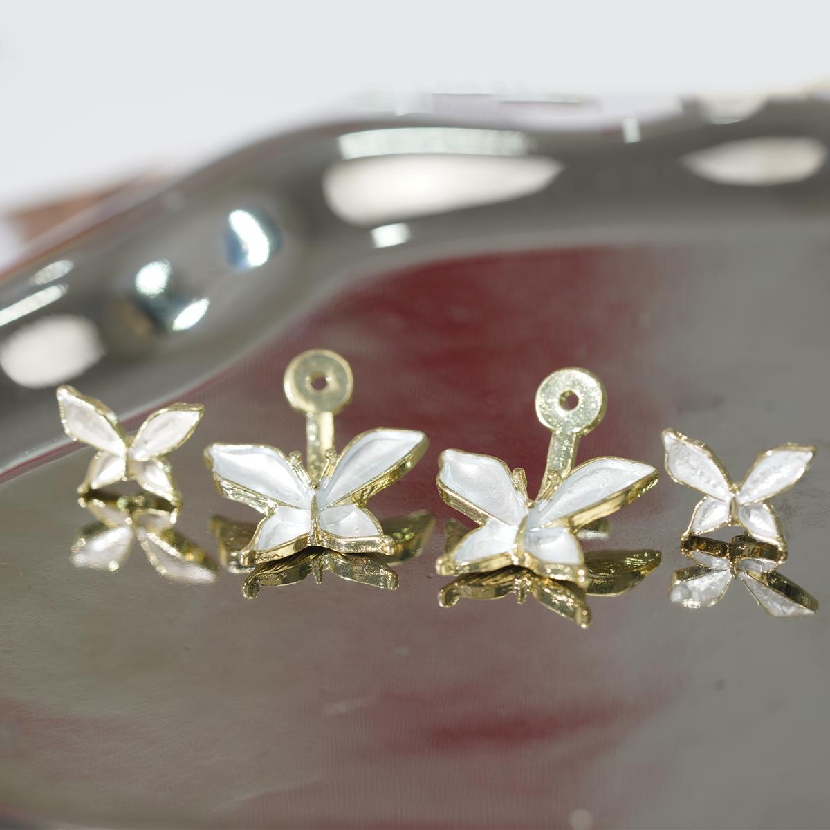 These earrings feature a charming floral design. The main frame is alloy, paired with 925 silver ear posts. Petals boast a glossy, silver-gold tone enamel finish, outlined by delicate metal trim — like tiny blooms frozen in time.