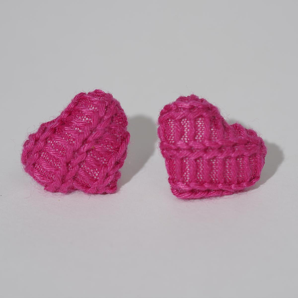 Handcrafted from soft wool, these heart - shaped studs come in pink and white. The alloy ear posts are cleverly hidden inside the knit, ensuring a secure and seamless look.