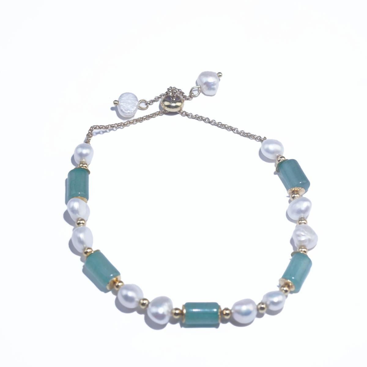 Design Style:Blend of classic and trendy! Alternating white pearls and green chalcedony creates a rhythmic, eye - catching look. The chain - type adjustable clasp adds a modern touch, suiting both daily leisure and light - formal occasions.