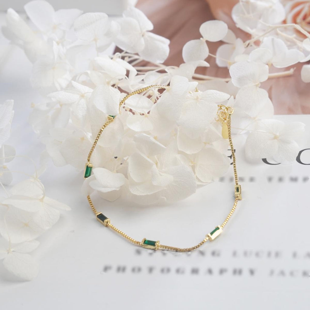 Design Style: Embrace minimalist fashion! This bracelet features a sleek gold - plated chain, interspersed with green, gem - like long - shaped accents. The sharp color contrast keeps it from being overly complicated yet adds a standout touch. Ideal for daily wear, it pairs well with both casual outfits and light - office looks, elevating your elegance effortlessly.