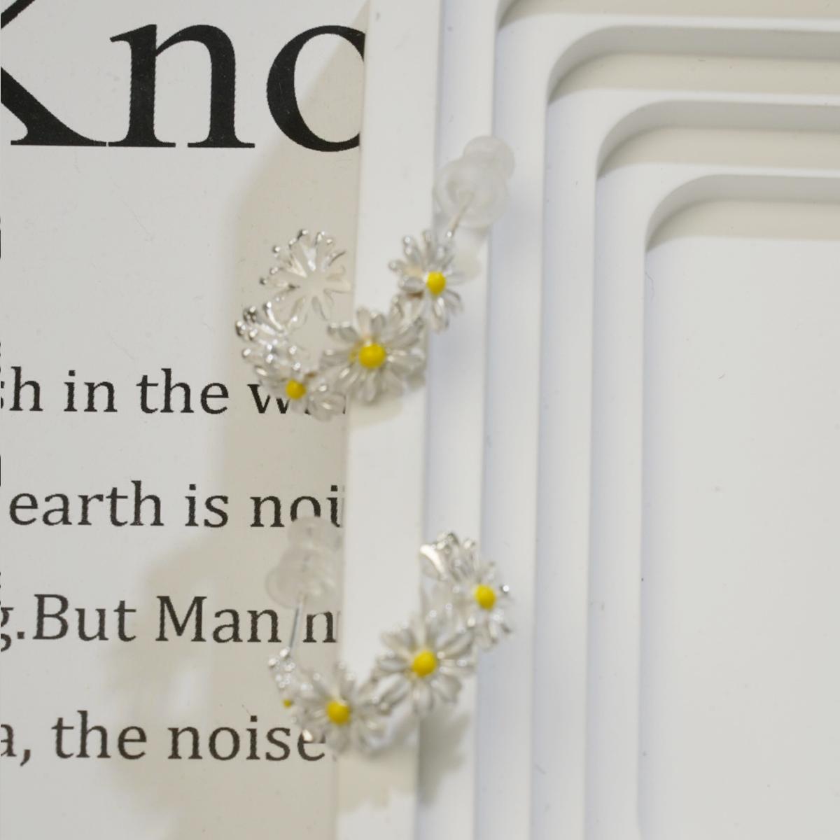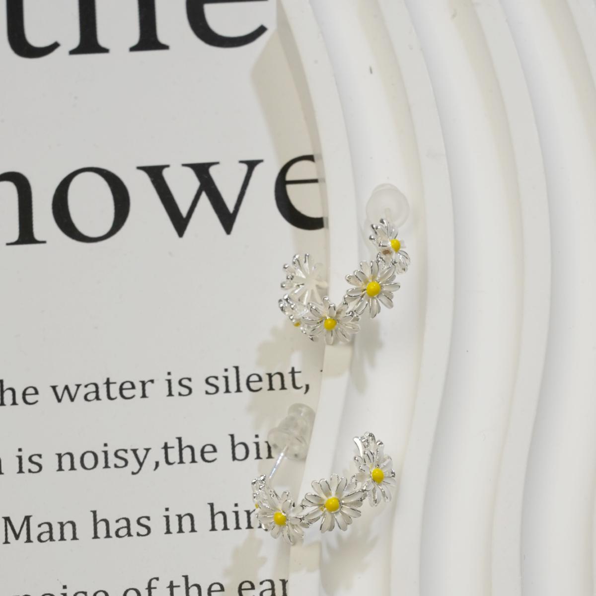 【Hoop Earrings】C-shaped Yellow Daisies Earrings, Fresh & Playful, Perfect for Young Trend Women