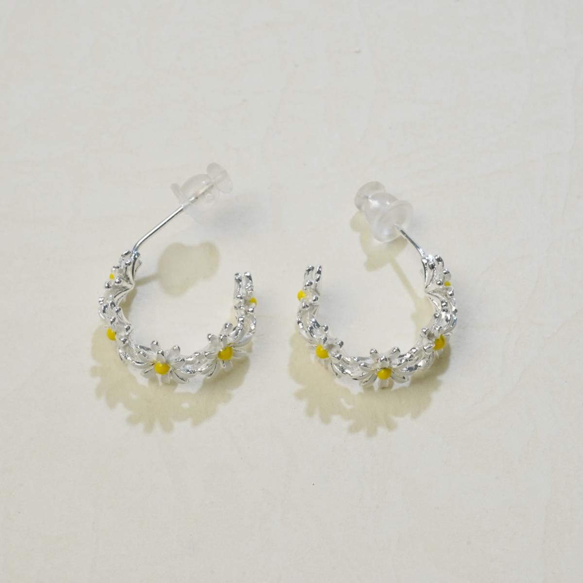 These hoop earrings feature a chic C - shape design. Made of copper, they’re decorated with tiny yellow daisies. Blending natural inspiration and simple style, the delicate casting ensures vivid, 3D flower shapes and clear details.
