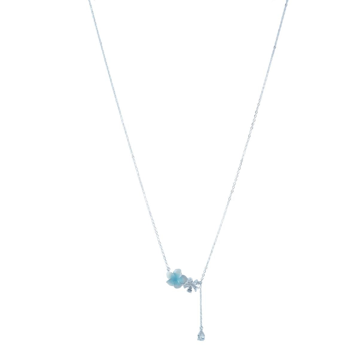 Key Details: This enchanting necklace features a delicate frost-blue flower with petal-perfect cuts, adorned with dewdrop-like...