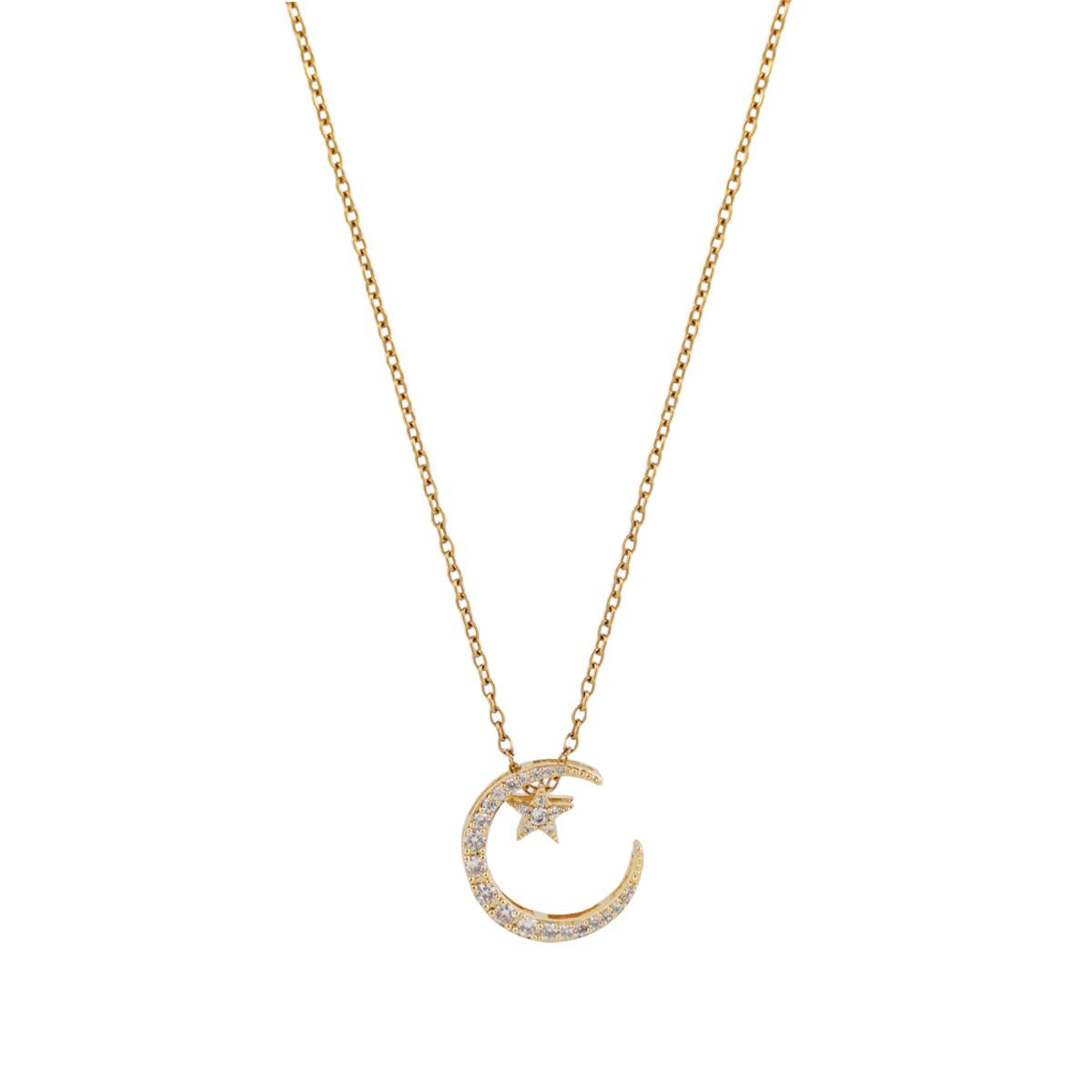 HomeCOPPER MOSS-TT【Pendant Necklace】Moon Star Pendant Necklace Stainless Steel Chain Gold-Tone Crystal Zirconia Celestial Romantic Elegant Jewelry for Women