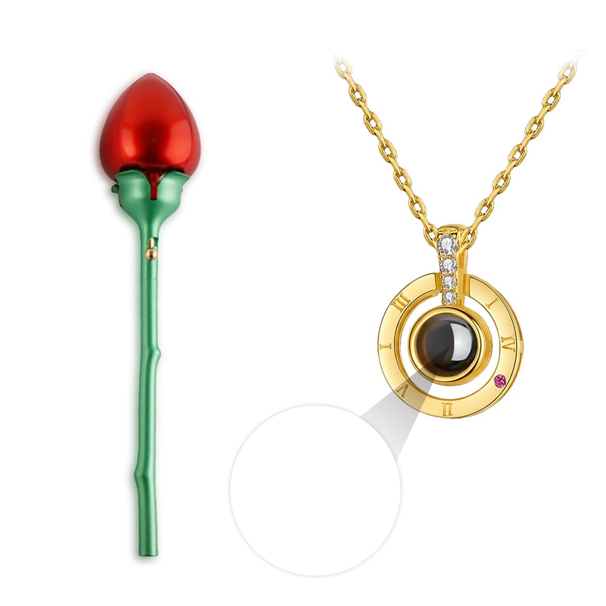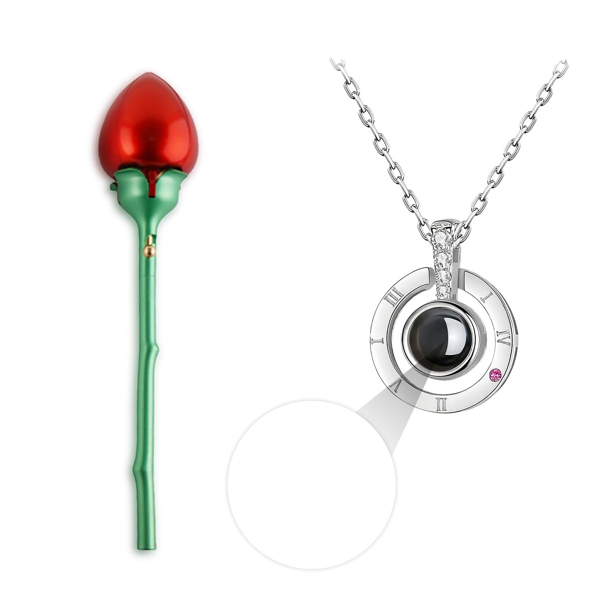 100 Languages I Love You Necklace for Women, Personalized Name Projection Pendant Jewelry, Customizable Romantic Gift for Mom Wife Girlfriend on Valentine's Day, Anniversary, Birthday