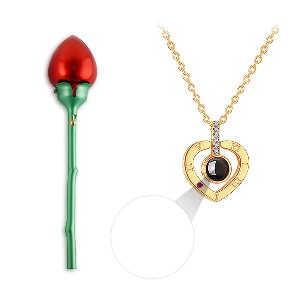 This unique pendant is nano-engraved with "I Love You" in 100 languages and can be customized with a name at the center. Using your phone’s flashlight, simply place the crystal against your camera lens to project the multilingual message onto any surface. Crafted from hypoallergenic gold or silver plated copper, it includes a 41cm chain with a 4cm extender and lobster clasp. Presented in an elegant automatic-flip or rose gift box, it’s a deeply personal gift for anniversaries, Valentine’s Day, or Mother’s Day—symbolizing love that transcends language.