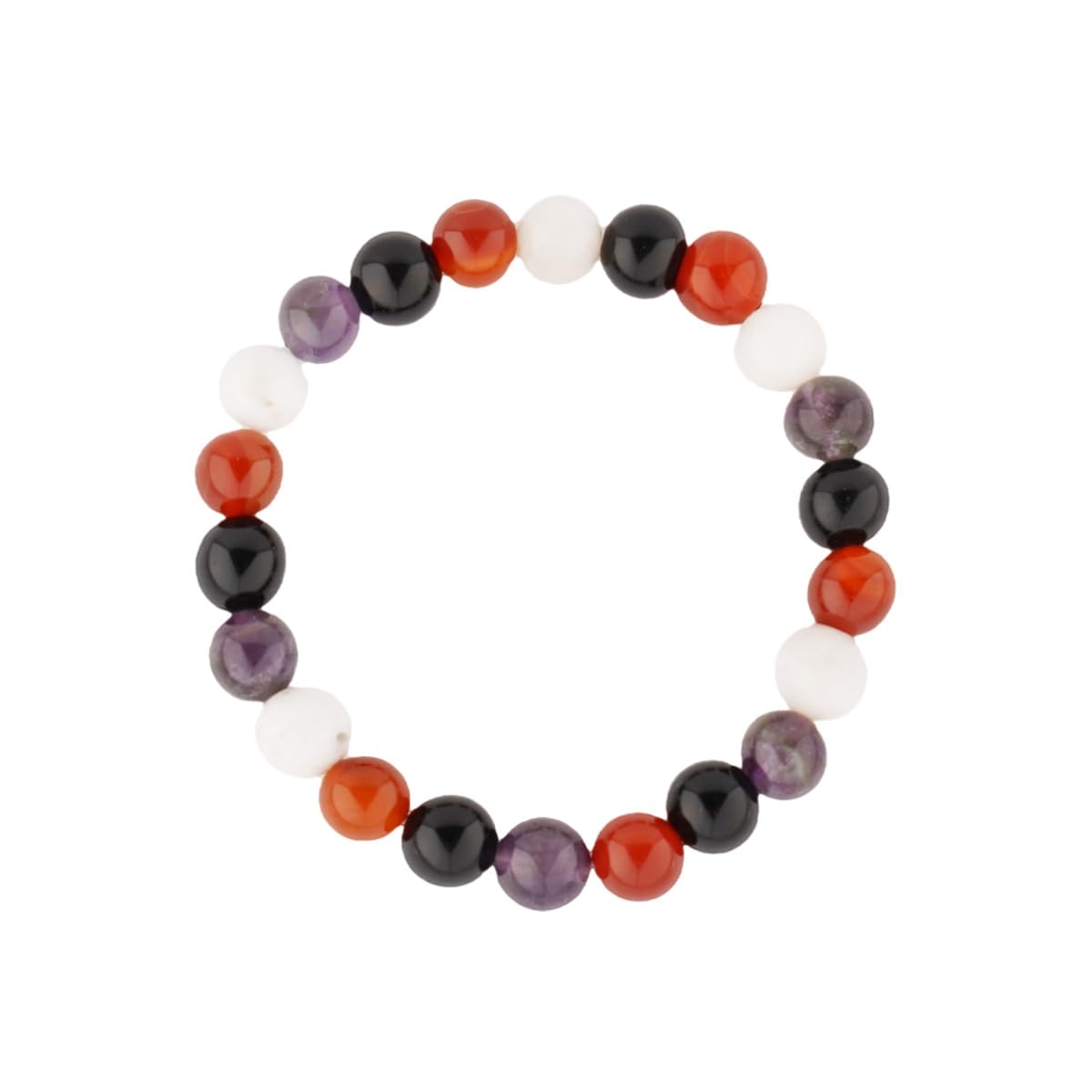 Celebrate the season with this festive bracelet featuring genuine natural stone beads in classic Halloween colors: Ghost White, Warlock Purple, Midnight Black, and Pumpkin Orange. Strung on a high-quality elastic cord with secure knotting, the 7-inch stretch design ensures easy, comfortable wear for various wrist sizes. Its unisex style and neutral color scheme make it perfect for all ages—ideal for trick-or-treating, parties, or as a family gift. Each piece showcases natural variations in the stones for an authentic look.
