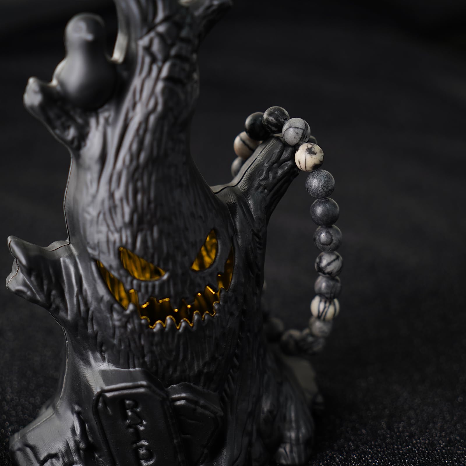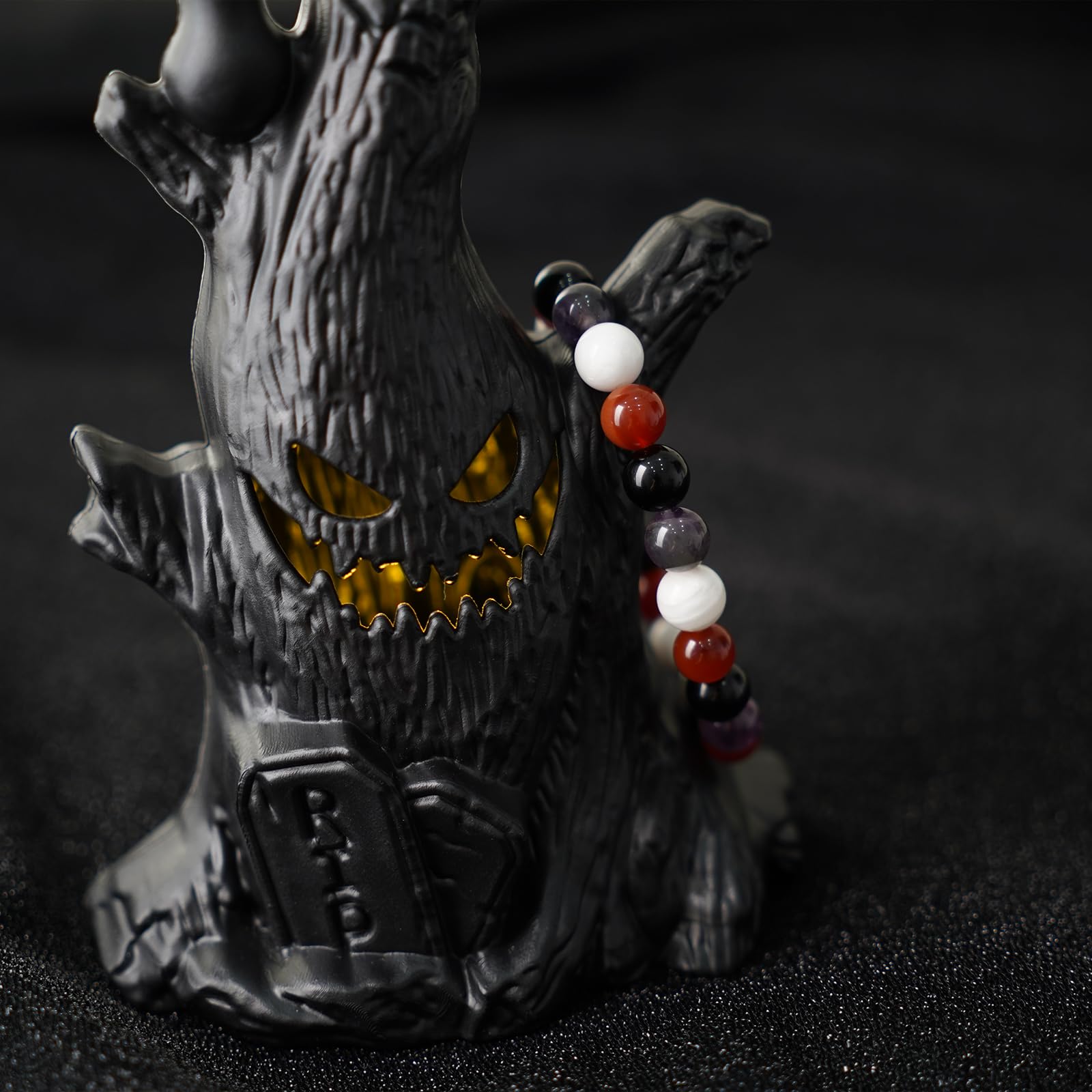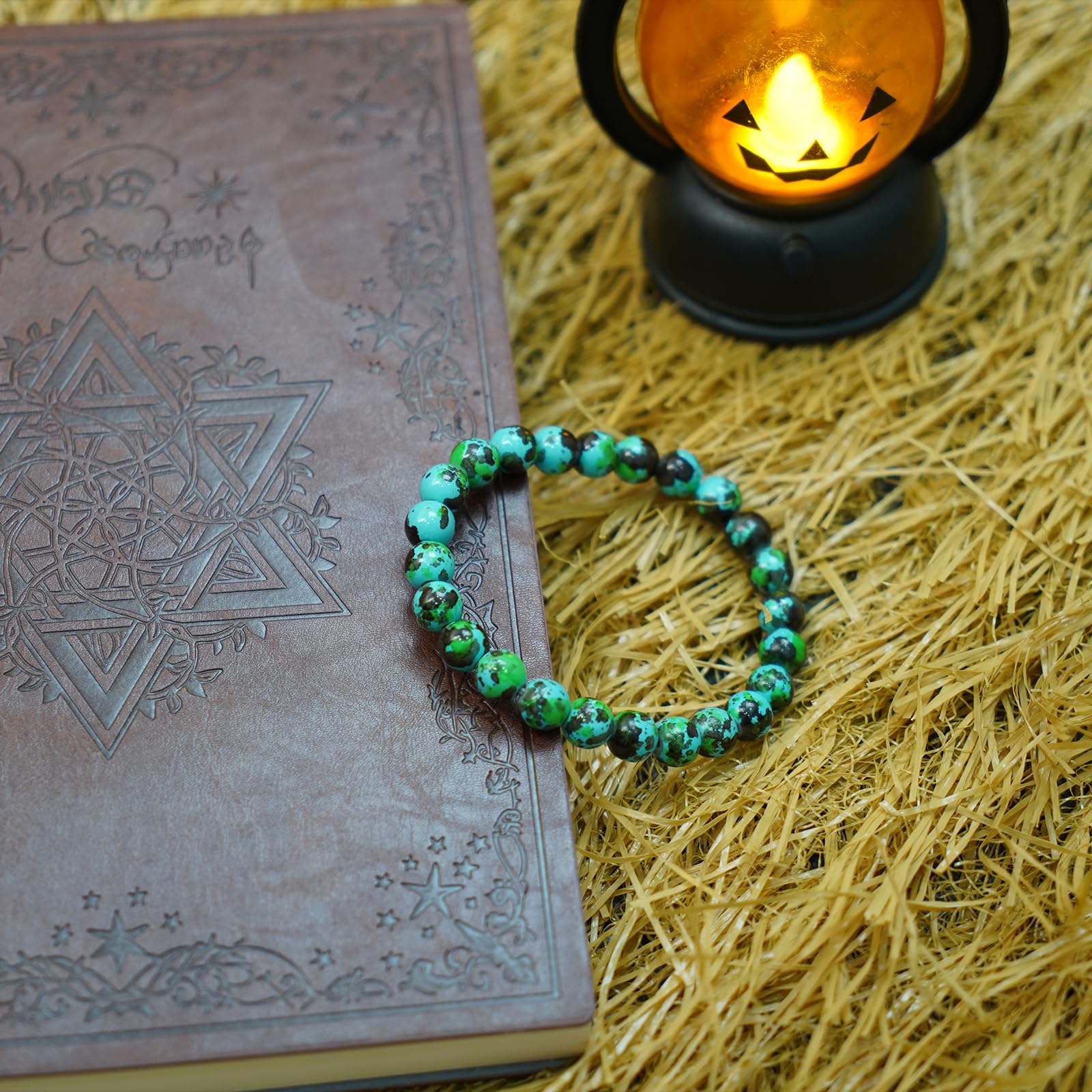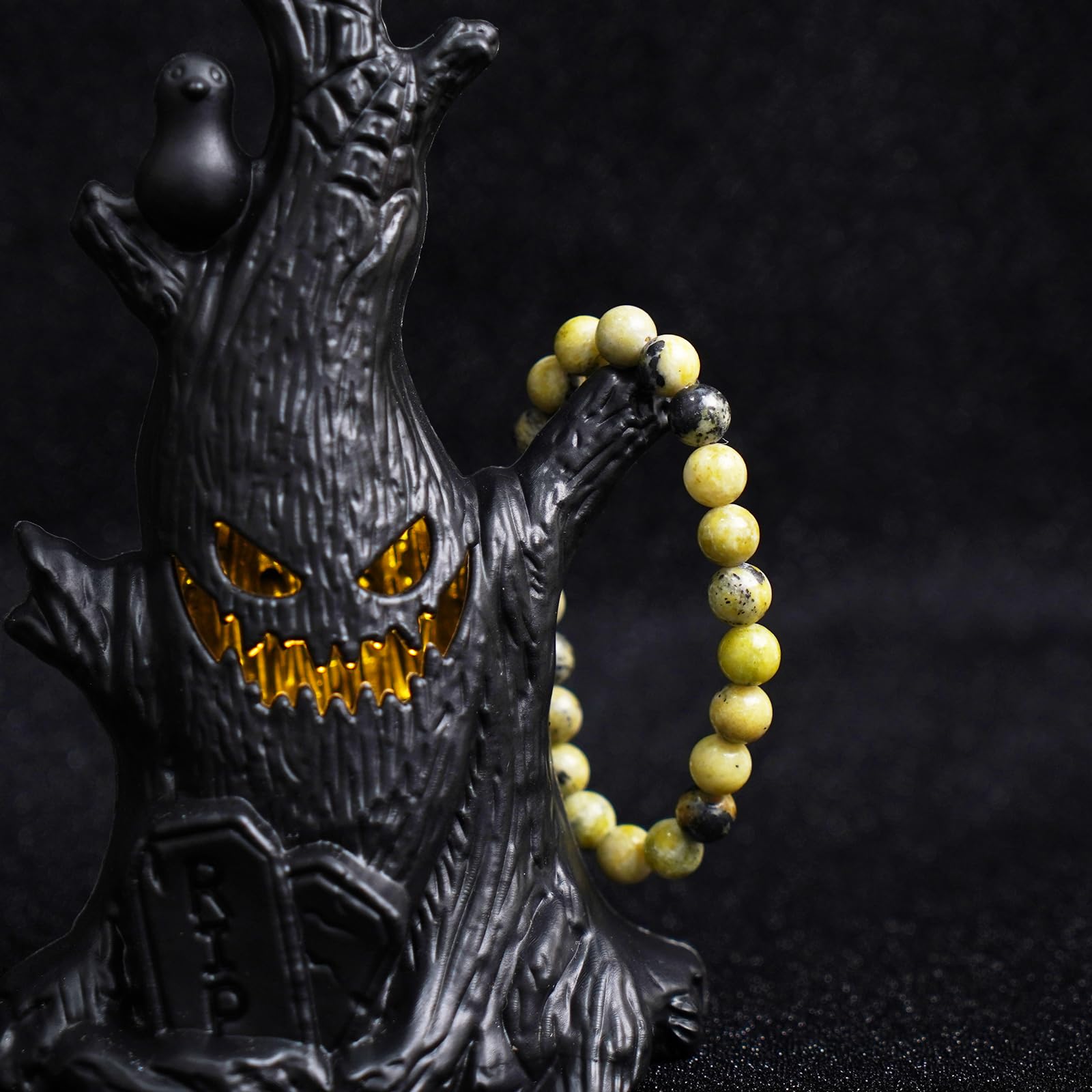 HomeEVOCATION-HLHalloween Beaded Bracelet, Natural Stone Beads in Halloween Charm, Elastic String for Easy Wear, Unisex Spooky Holiday Jewelry Gift for Adults & Kids
