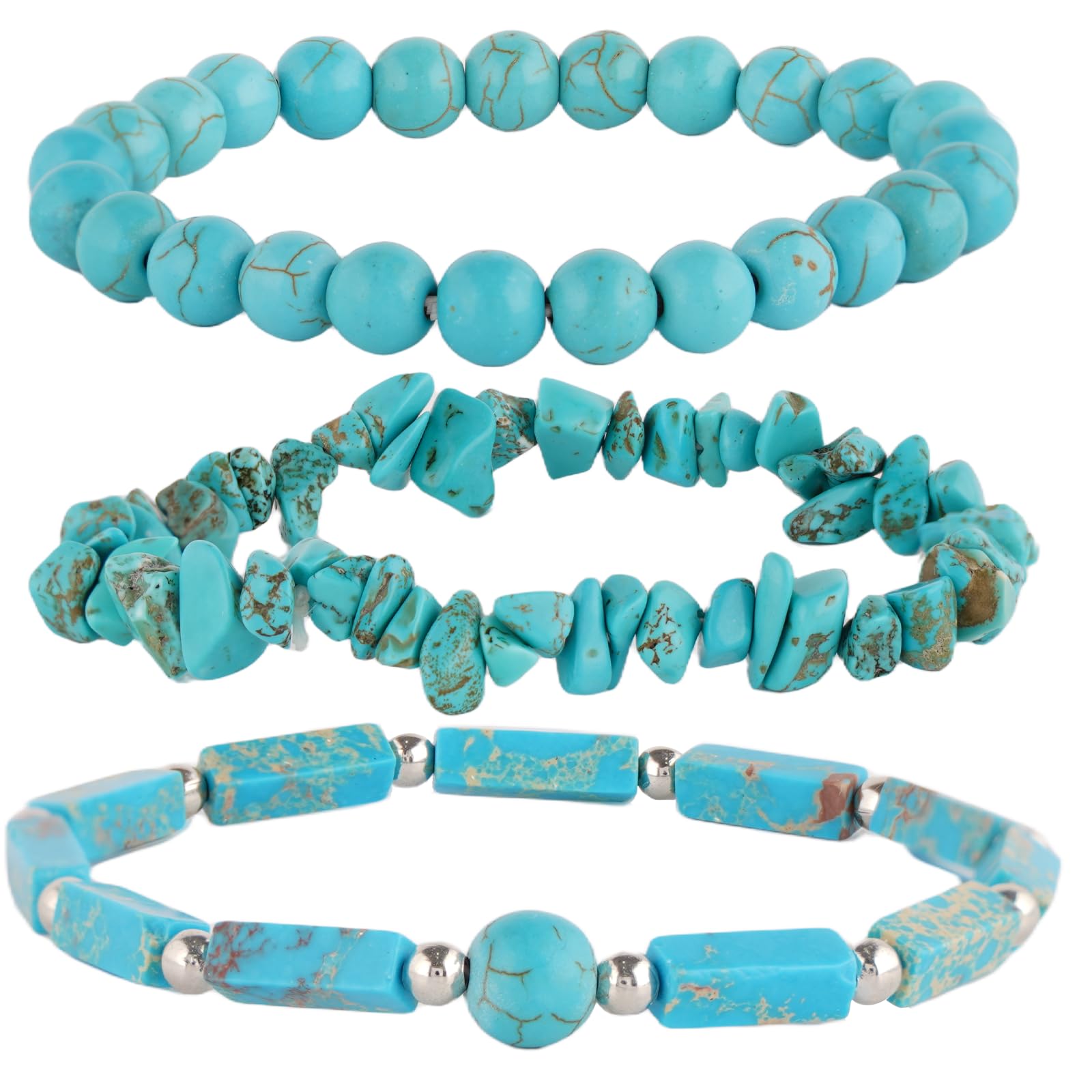 HomeEVOCATION-HLNatural Stone Healing Bracelet Set for Women & Men, Chakra Anxiety Relief Beaded Bracelets, Turquoise Gemstone Elastic Stretch Bracelet for Yoga Meditation, Unisex Spiritual Jewelry Gift