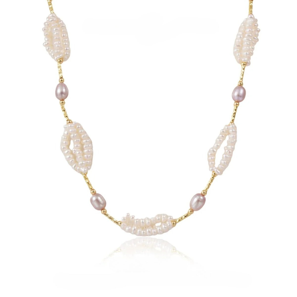 The golden T-clasp operates smoothly and secures reliably. The natural freshwater pearls are skin-friendly and comfortable, while the overall necklace is lightweight and easy to wear for extended periods without discomfort. The intricate spiral textures are durably crafted, and the integration of pearls and chain is seamless, balancing aesthetic appeal with everyday practicality.