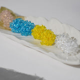 Add a delicate floral pop to your look with these hand - beaded 3D cluster earrings .Crafted from tiny seed beads and held together by gold - toned wire, each earring forms a lush 3D floral cluster. Available in four dreamy hues—pink, blue, yellow, and white—every petal - like detail is hand - assembled for a unique, artisanal touch.