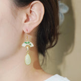 Made from durable alloy with a gold finish, the fan - shaped top showcases a white enamel base with green enamel bamboo stalks. A faux pearl and tiny zircon add sparkle at the fan’s center, while a light - green teardrop enamel pendant hangs below.