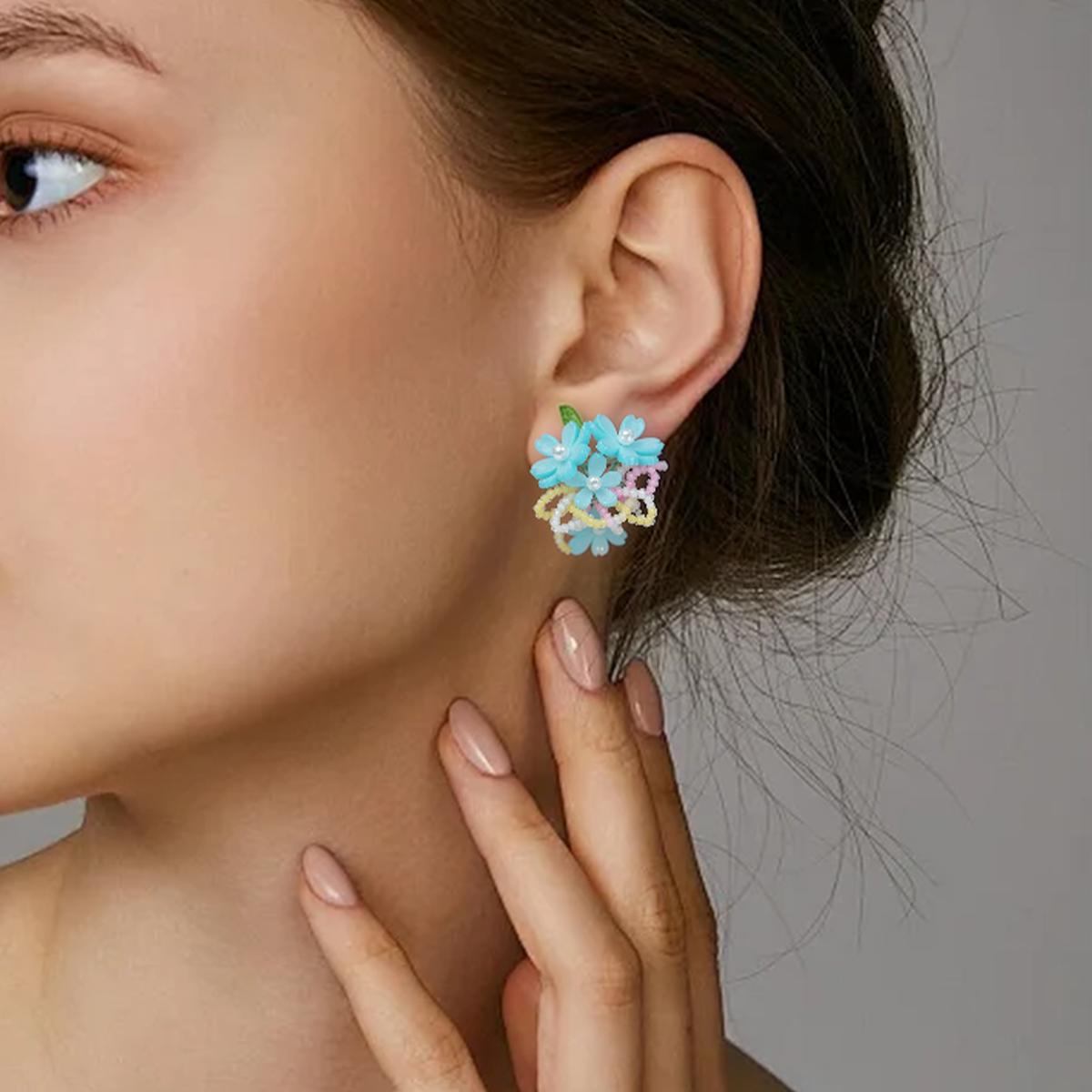 Pastel color palette (blue/pink/yellow/green) with metallic accents suits casual boho styles. Neutral bead tones pair well with summer fabrics and office wear.