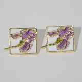 Crafted from durable alloy, the square frame showcases a white enamel base with a raised purple flower motif, accented by gold trim for a vintage touch.