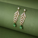 Tropical Leaf Drop Earrings for Women, 14K Gold Plated 925 Sterling Silver Dangling Earrings, Leaf Design with Green Zirconia, Luxury Nature Inspired Jewelry Gift