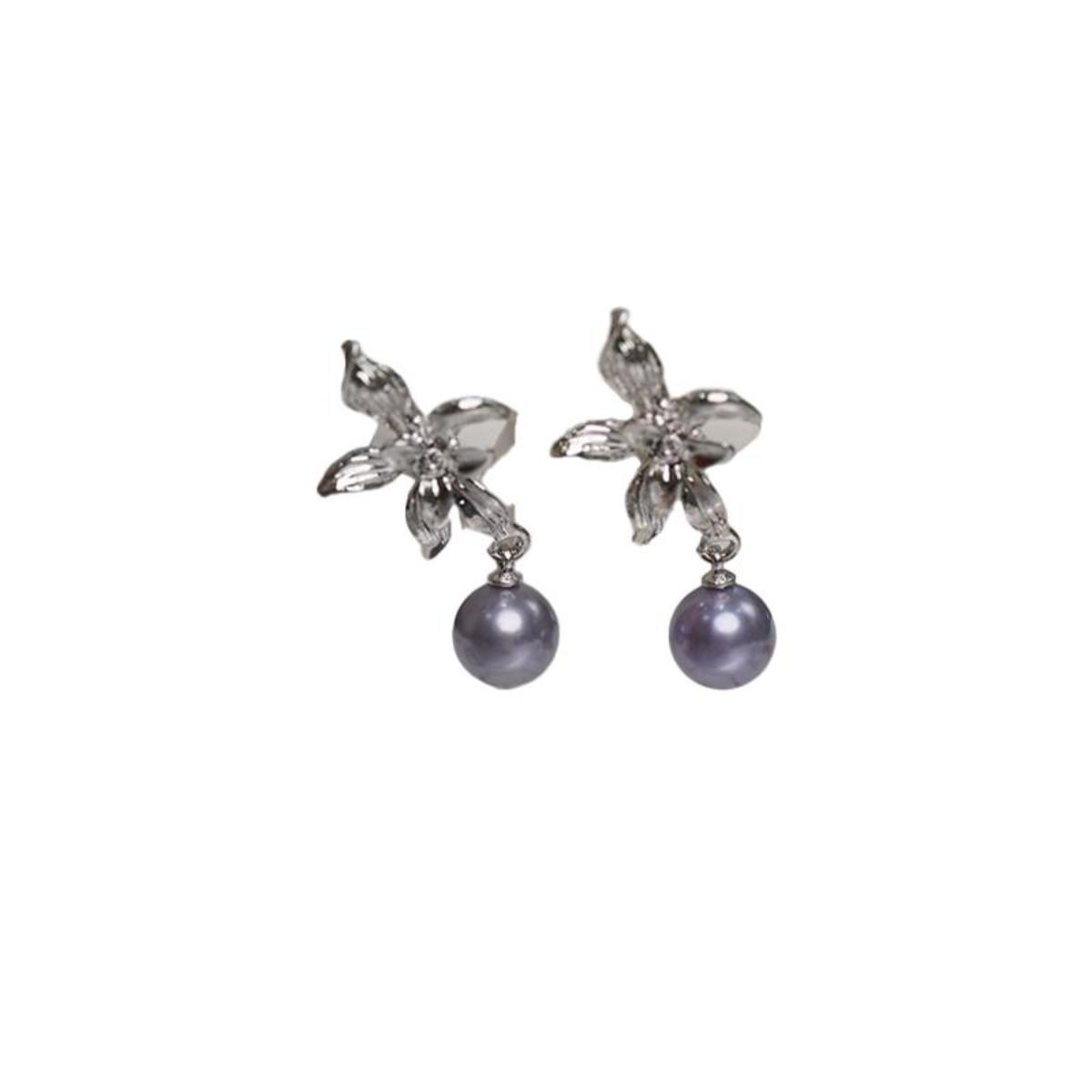 【Stud Earrings】Silver Alloy Textured Flower ,Purple Bead Drops, Elegant Dainty Earrings for Women