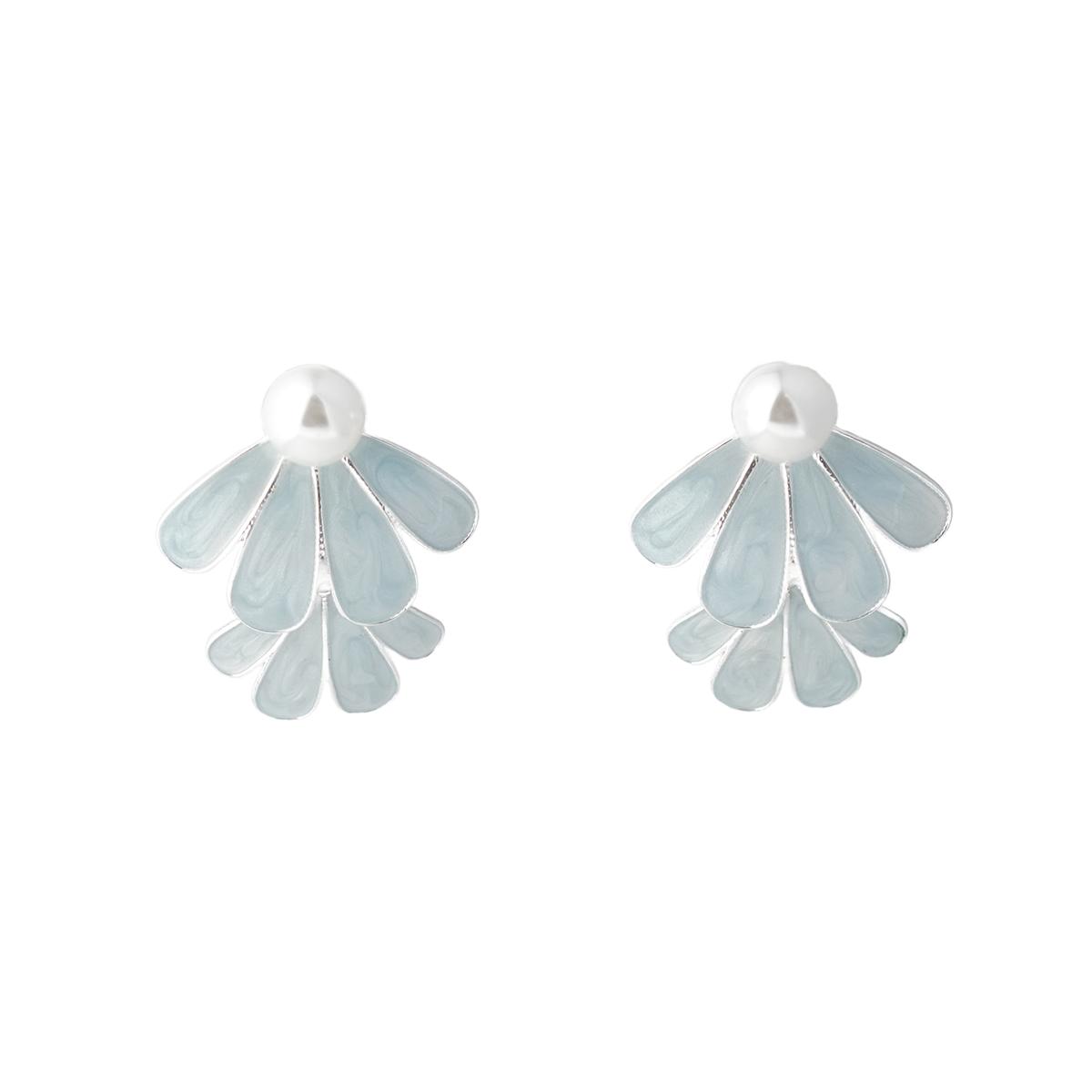 【Stud Earrings】Blue Petal & Pearl Flower Earrings, Fresh & Romantic, Ideal for Women Loving Nature - Inspired Styles
