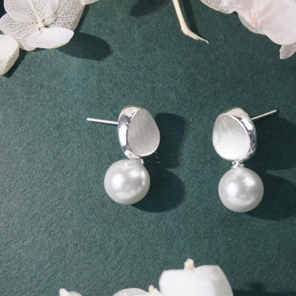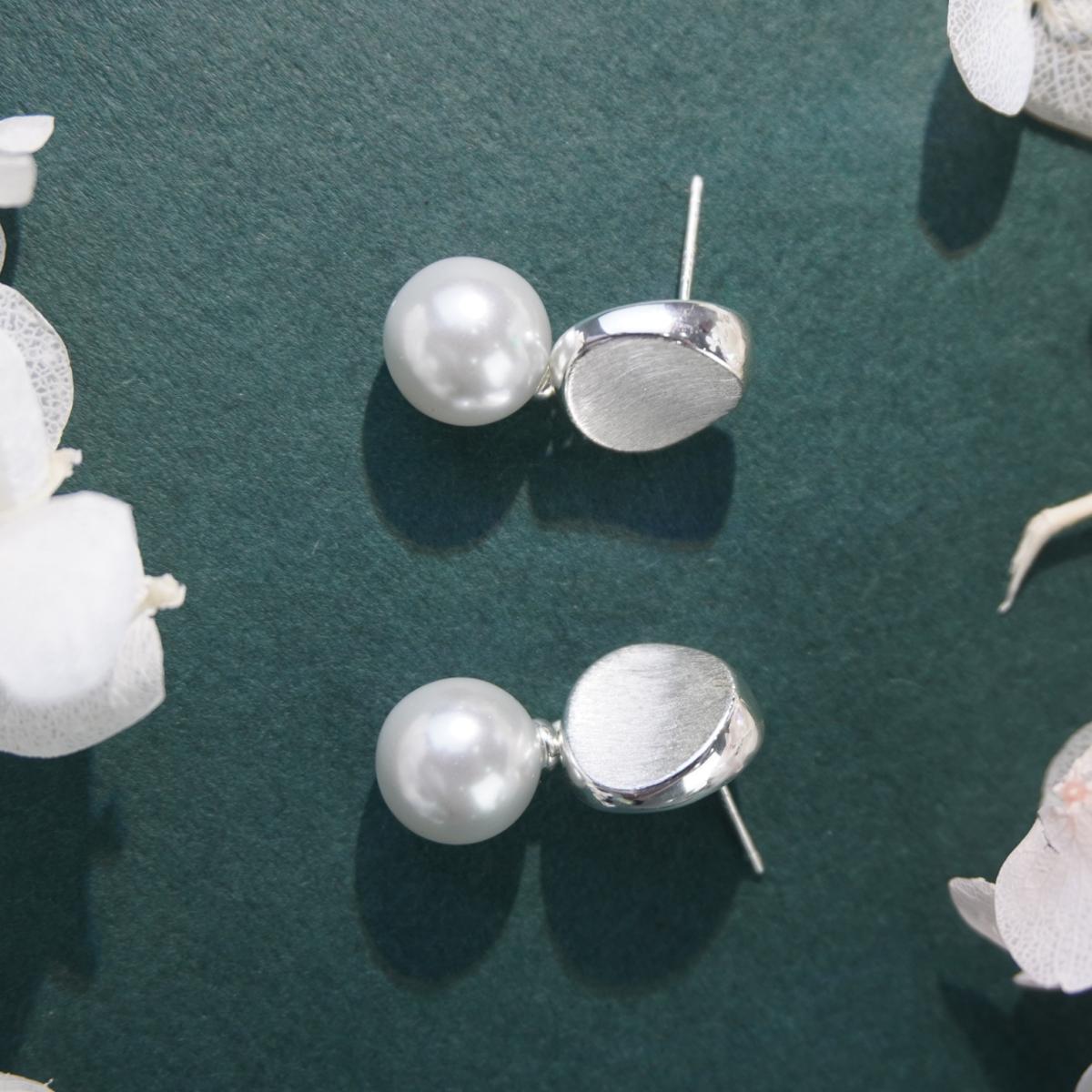 【Stud Earrings】Light Grey Pearl Earrings, Minimalist Elegant Design, Daily Wear For Female Fashion Lovers