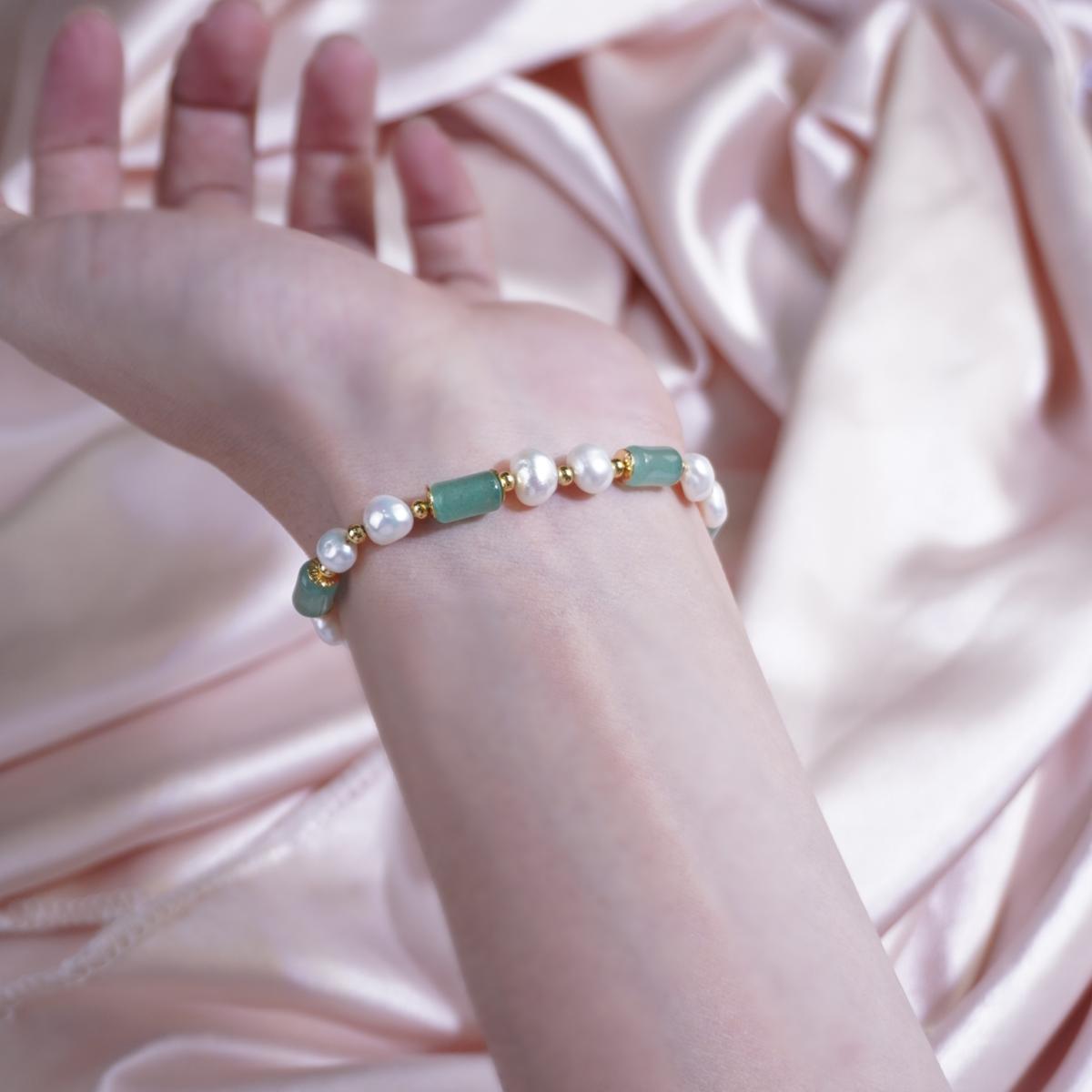 Design Style:Blend of classic and trendy! Alternating white pearls and green chalcedony creates a rhythmic, eye - catching look. The chain - type adjustable clasp adds a modern touch, suiting both daily leisure and light - formal occasions.
