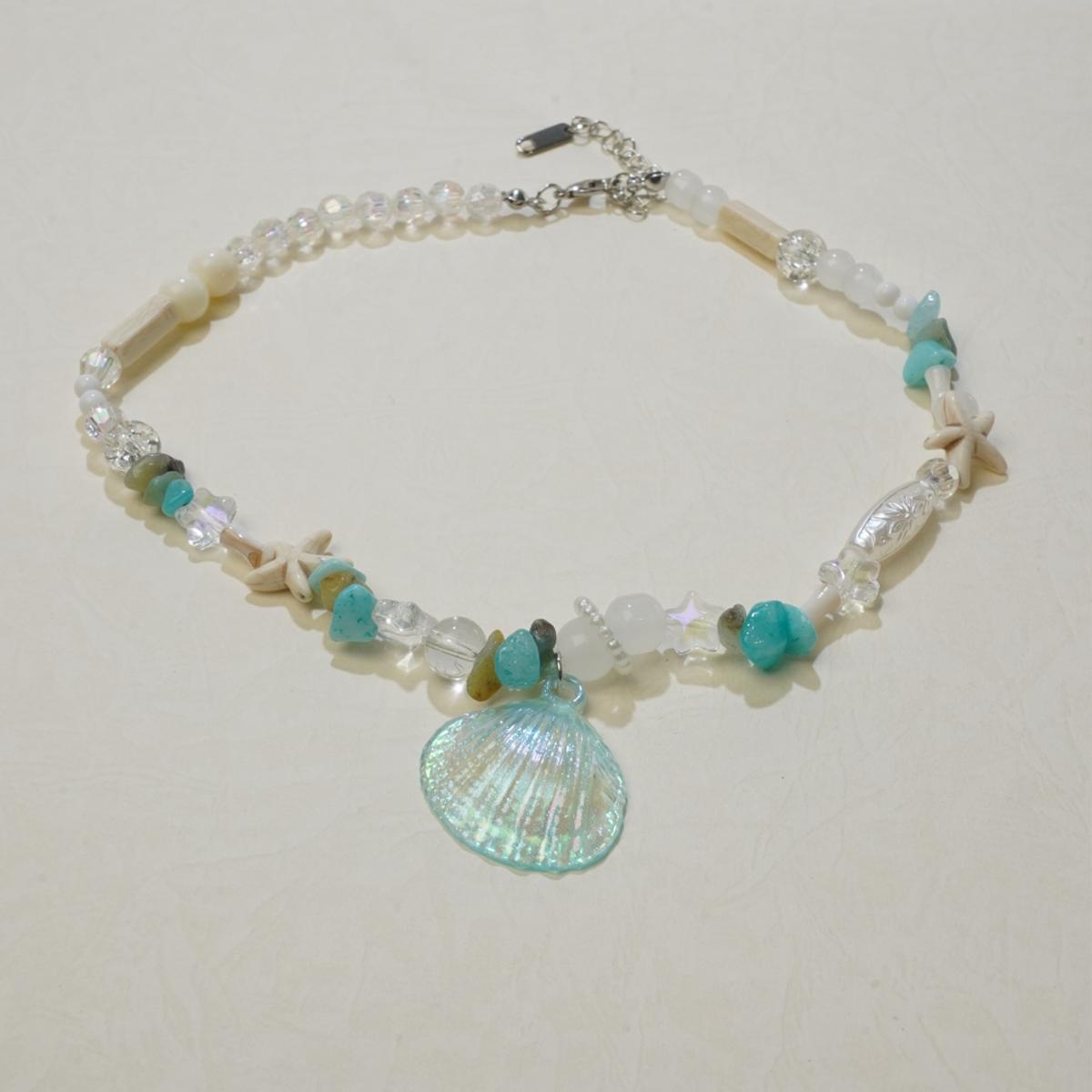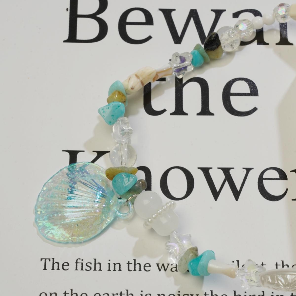 This necklace blends ocean - inspired elements like seashells and starfish, paired with crystals and colorful stones. The ocean - themed design brings a fresh, romantic, and casual vibe, creatively using marine motifs.