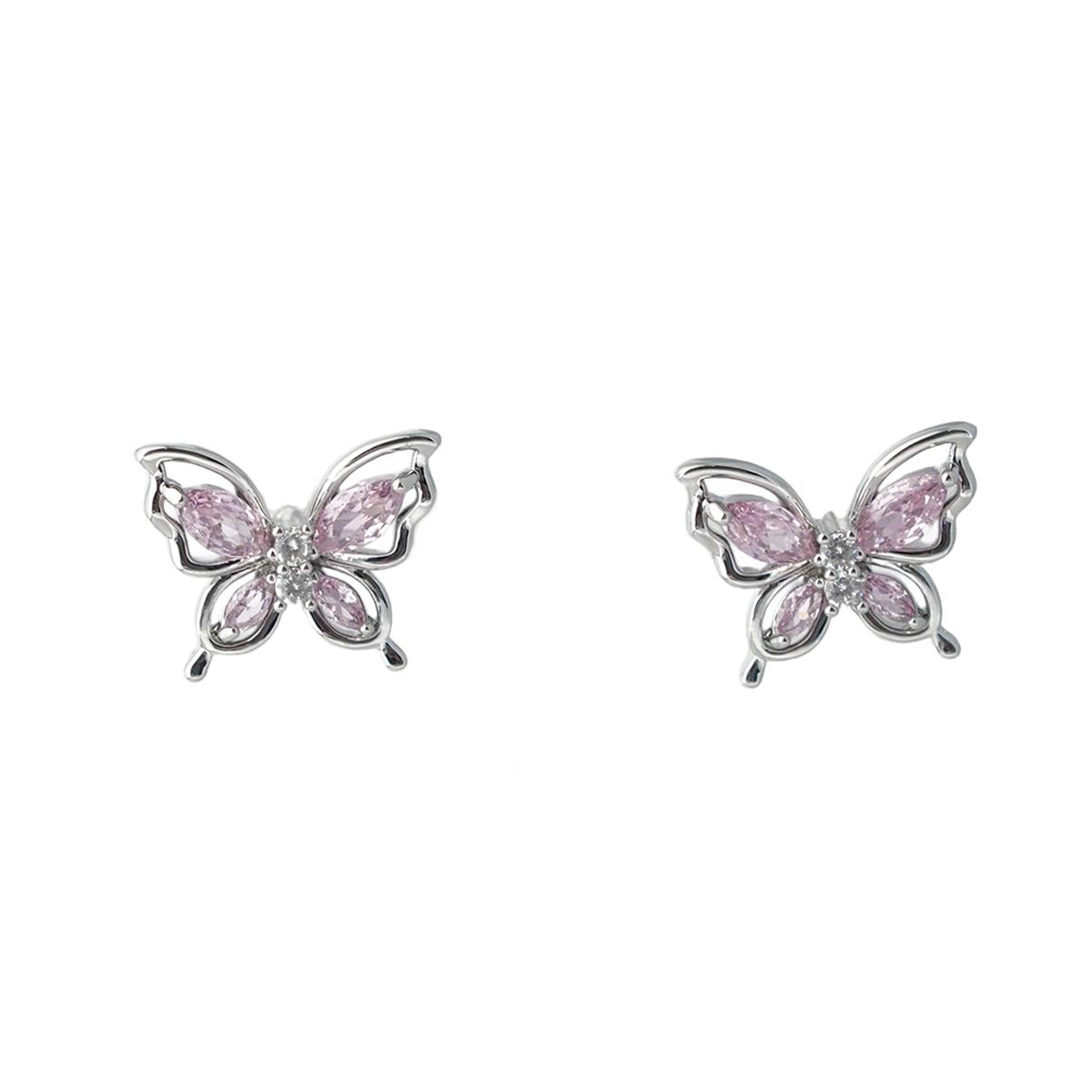 【Stud Earrings】Pink Zircon Butterfly Earrings, Dainty & Romantic, Perfect for Women Loving Sweet Styles