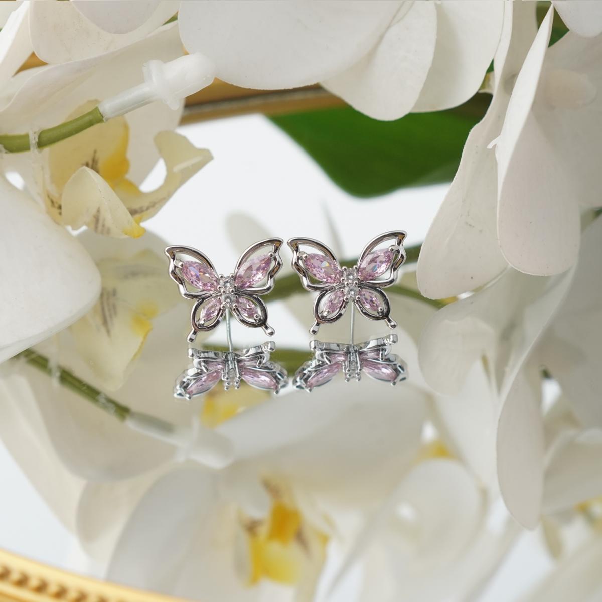 Quality Materials:Copper forms the base – flexible for precise butterfly outlines and wing textures. Treated for a silver finish, giving a sleek metal feel. Durable and holds shapes well. Zircons (pink + white) on wings mimic gemstone shine, with high hardness and luster. Smart arrangement creates a sparkling, colorful effect. Boosts the earrings’ charm.