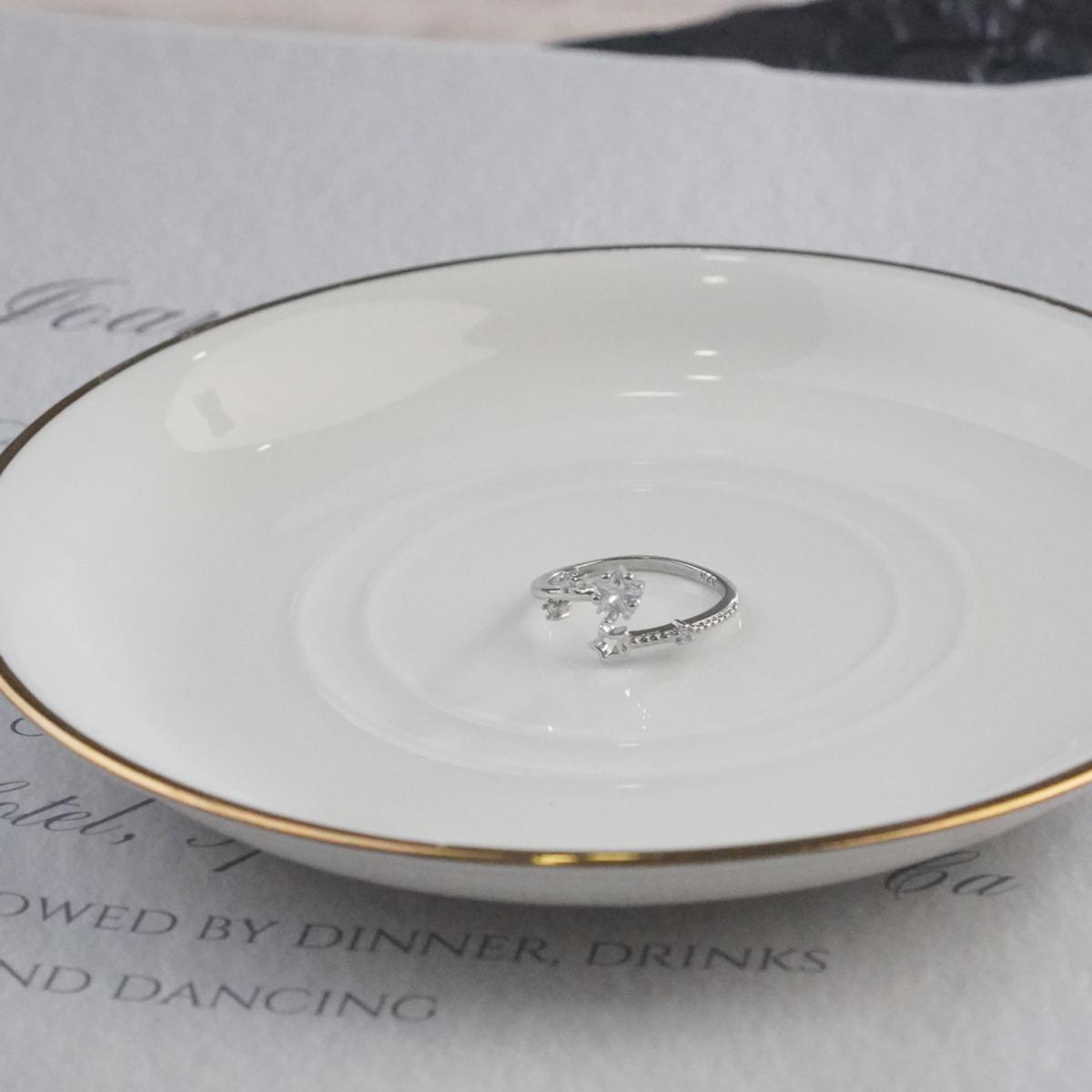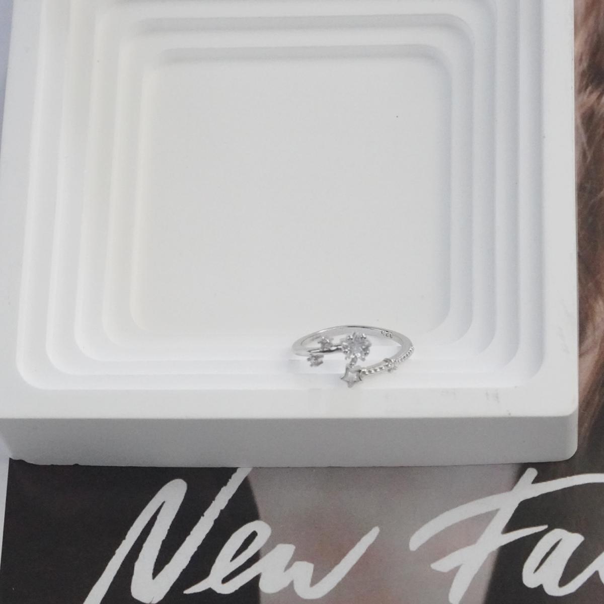 This elegant ring features an adjustable open copper band with a sleek, polished finish. This delicate silver ring features a starry-inspired design with star-cut zircon stones. The smooth edges and minimalist design create a refined look that’s perfect for everyday wear.