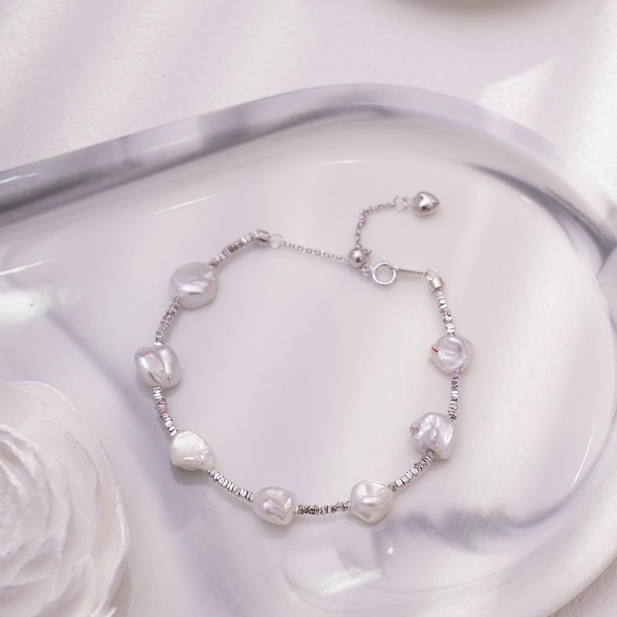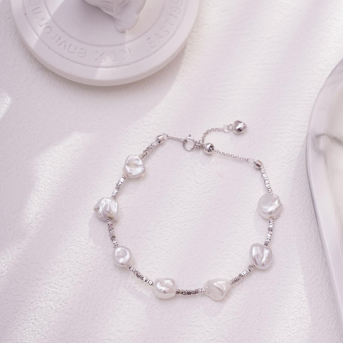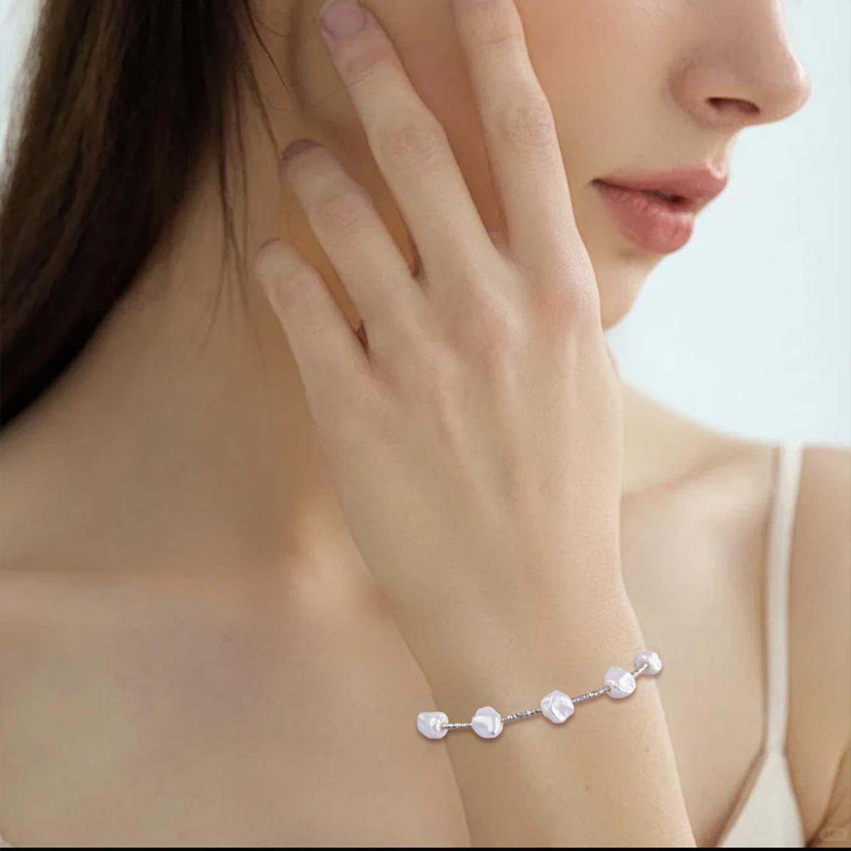 The bracelet boasts a clean and sleek design. The combination of silver metallic shine and the gentle texture of white pearls creates a timeless and elegant visual effect. Its style balances casual and refined elements, making it easy to pair with everyday outfits across seasons and suitable for a variety of daily occasions.