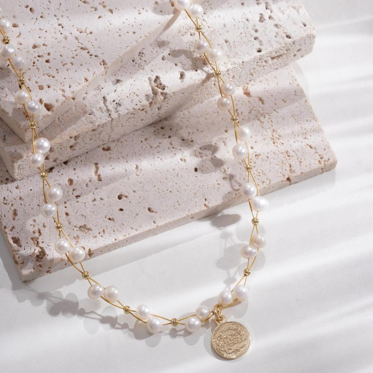 The necklace features naturally formed freshwater pearls, each handpicked for uniform shape, impeccable surface quality, and a smooth, warm-to-the-touch texture. The chains are crafted from premium brass with multi-layer gold plating for enhanced oxidation resistance, ensuring lasting brilliance even with prolonged wear. The robust lobster clasp provides secure fastening and smooth operation, enabling both safety and easy one-handed length adjustment. Every detail reflects meticulous craftsmanship, perfectly balancing beauty and functionality.