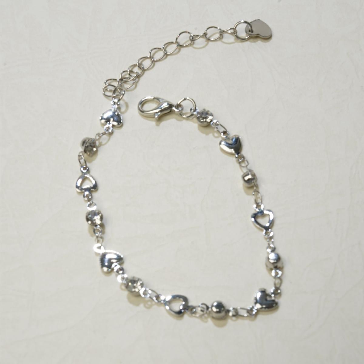 Crafted with a silver - alloy base, this bracelet features a charming mix of heart shapes, round beads, and sparkling zircon accents. The heart motifs bring a touch of romance, while zircons add delicate shimmer, creating a sweet - fresh aesthetic.