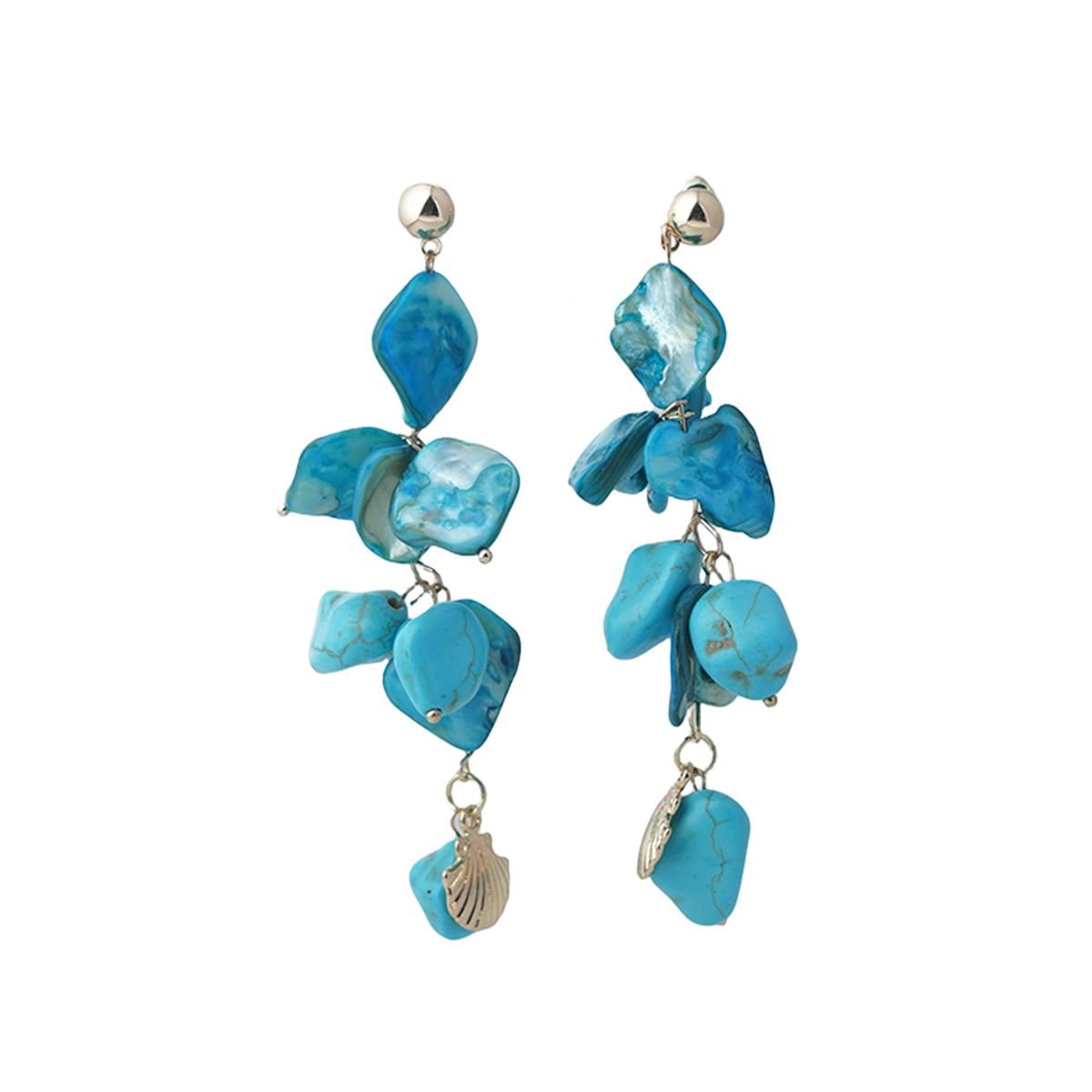 【Earrings/Necklace】Blue Natural Stone Earrings/Necklace with Metel Shell Charms, Unique Textured Design for Beachy Vibes Lovers