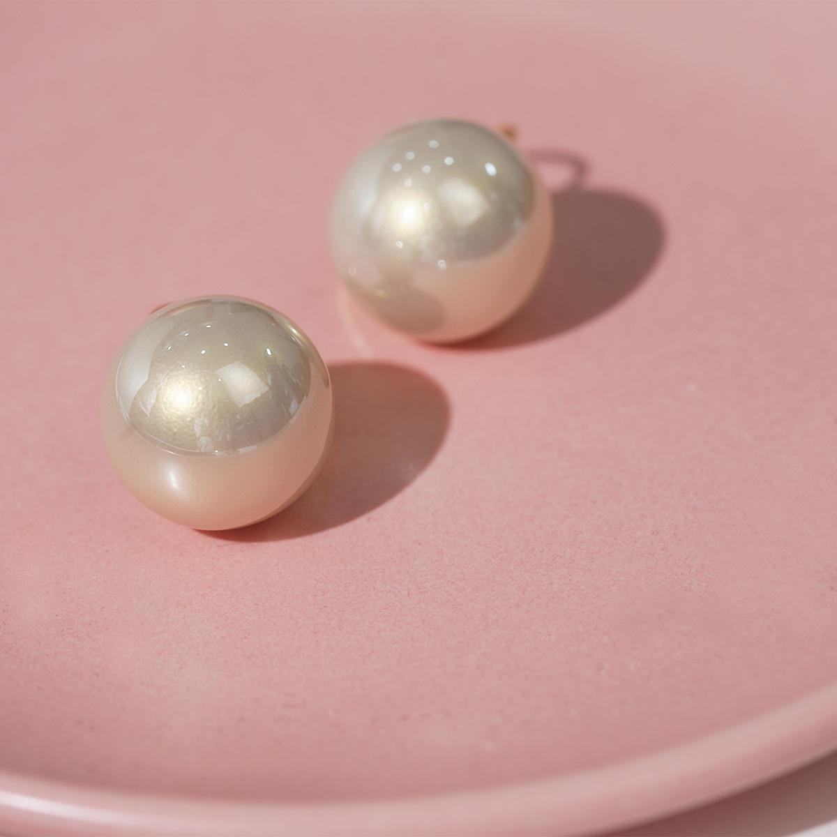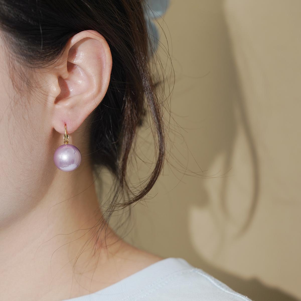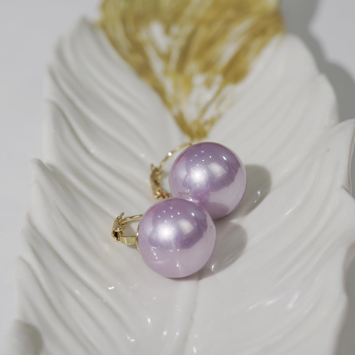 - Elevate your elegance with these timeless pearl - look studs. Gold - toned alloy hooks pair with smooth, lustrous round plastic imitation pearls, available in purple,beige,and gray.