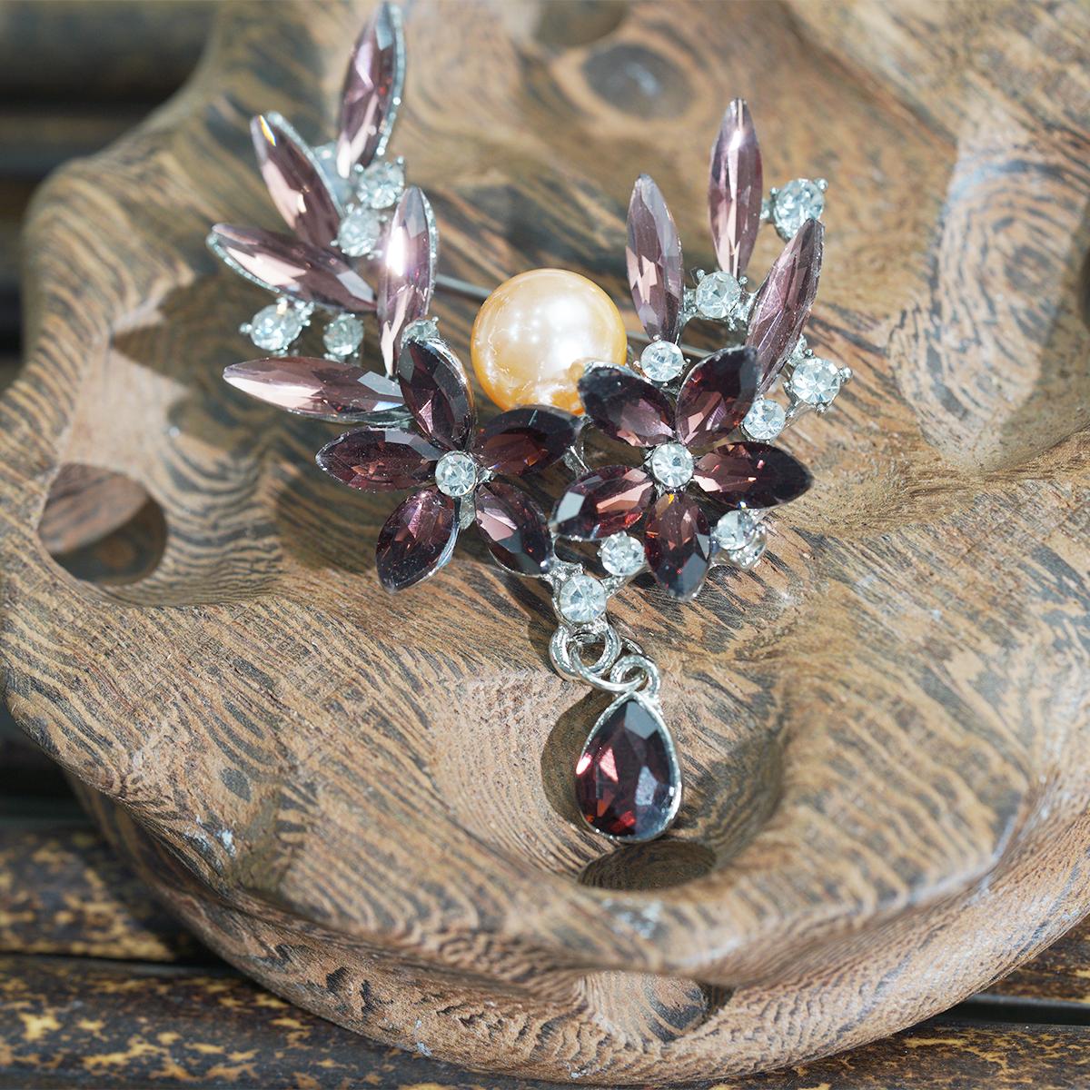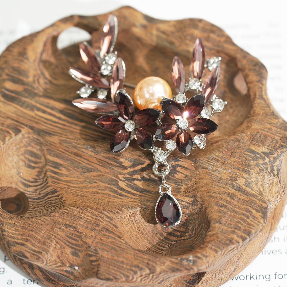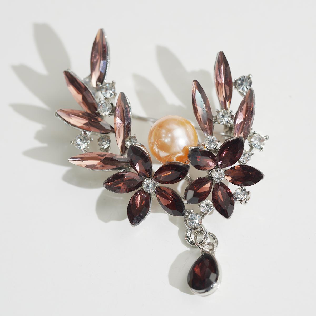 - Nature-Inspired Shape:Intricate brown gemstone petals/leaves frame a central pearl, creating a balanced, eye-catching contrast with silver-toned metal and clear crystals.