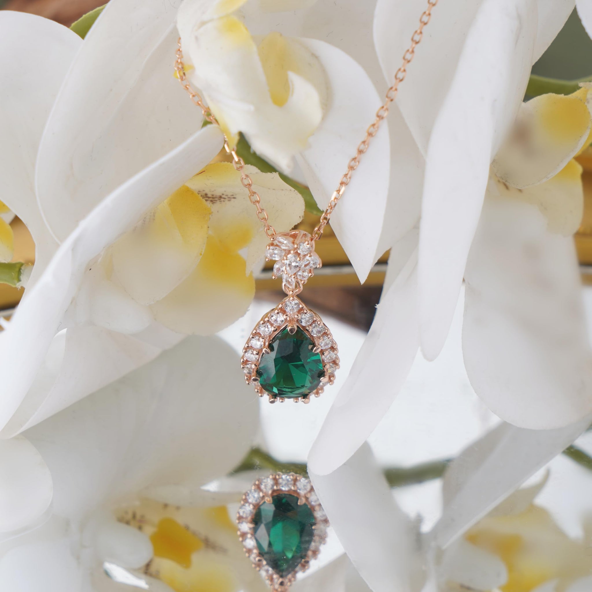 This elegant pendant necklace is crafted in hypoallergenic rose gold plated sterling silver, this lightweight necklace features a deep green spinel or a vibrant ruby centerstone, encircled by a halo of sparkling cubic zirconias. Adjustable 38cm+5cm chain ensures a customizable fit. Ideal for day-to-night wear, it comes gift-boxed for birthdays, anniversaries, or as a timeless token of appreciation.