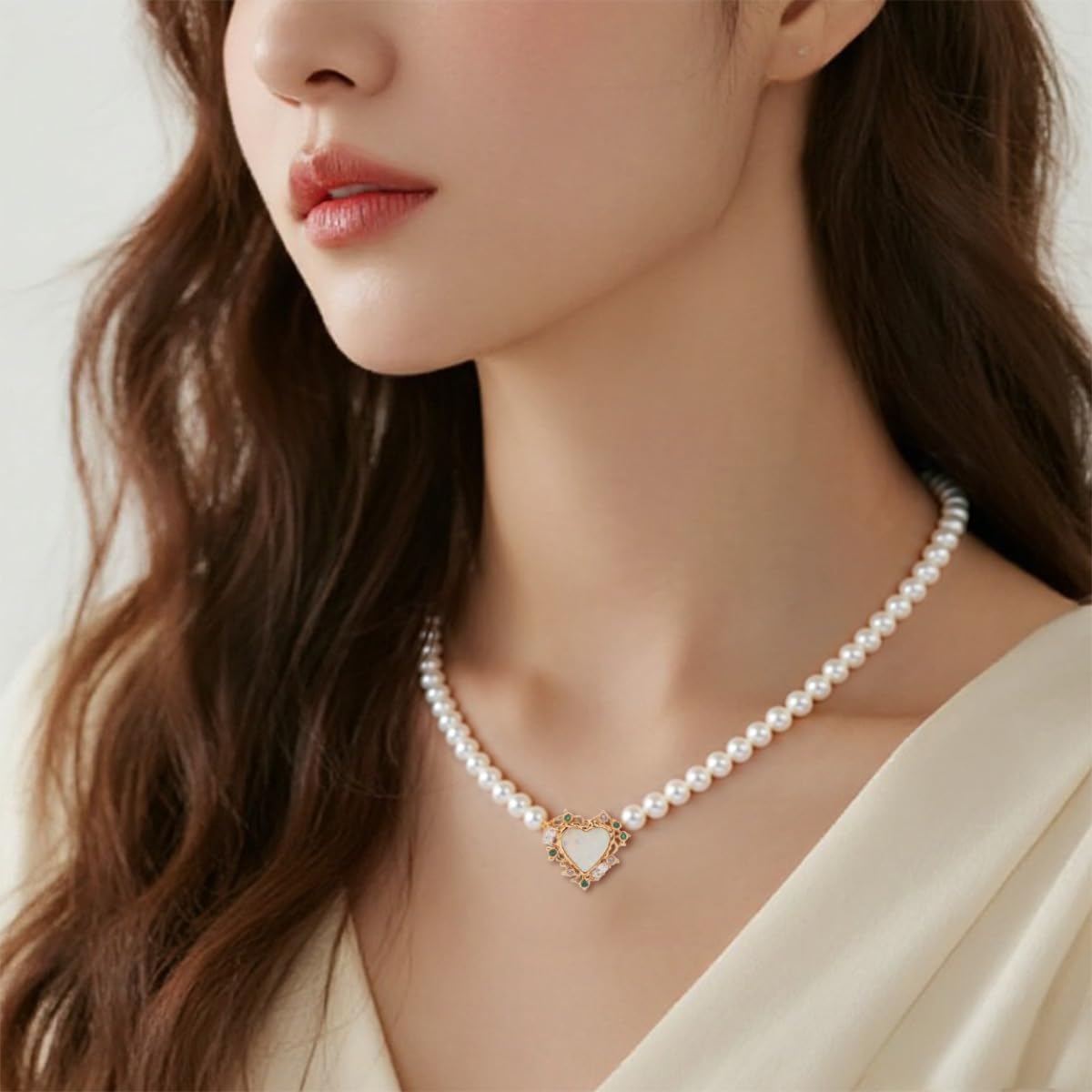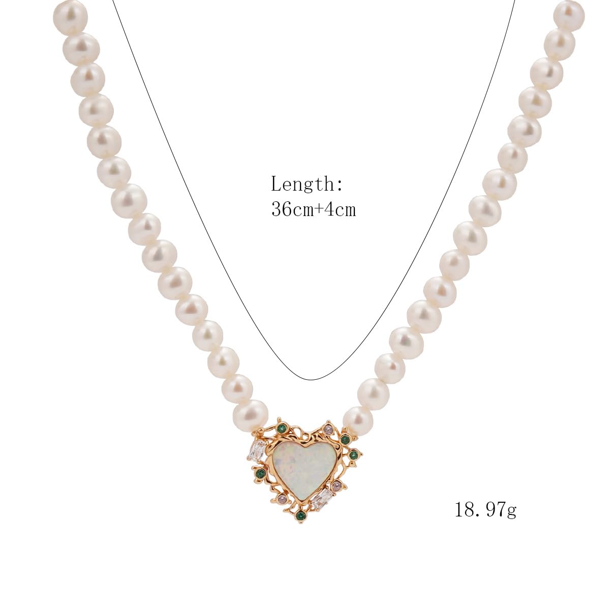 This elegant necklace combines a strand of creamy simulated pearls with a heart-shaped iridescent opal pendant, set in a 14K gold plated sterling silver frame accented with green, light purple, and clear zirconias. Weighing 18.97g with an adjustable 36cm+4cm chain, it offers luxurious comfort and a customizable fit. Crafted from hypoallergenic materials with secure pave settings, this classic yet contemporary piece comes in premium packaging—making it a perfect gift for anniversaries, Valentine’s Day, or special occasions.