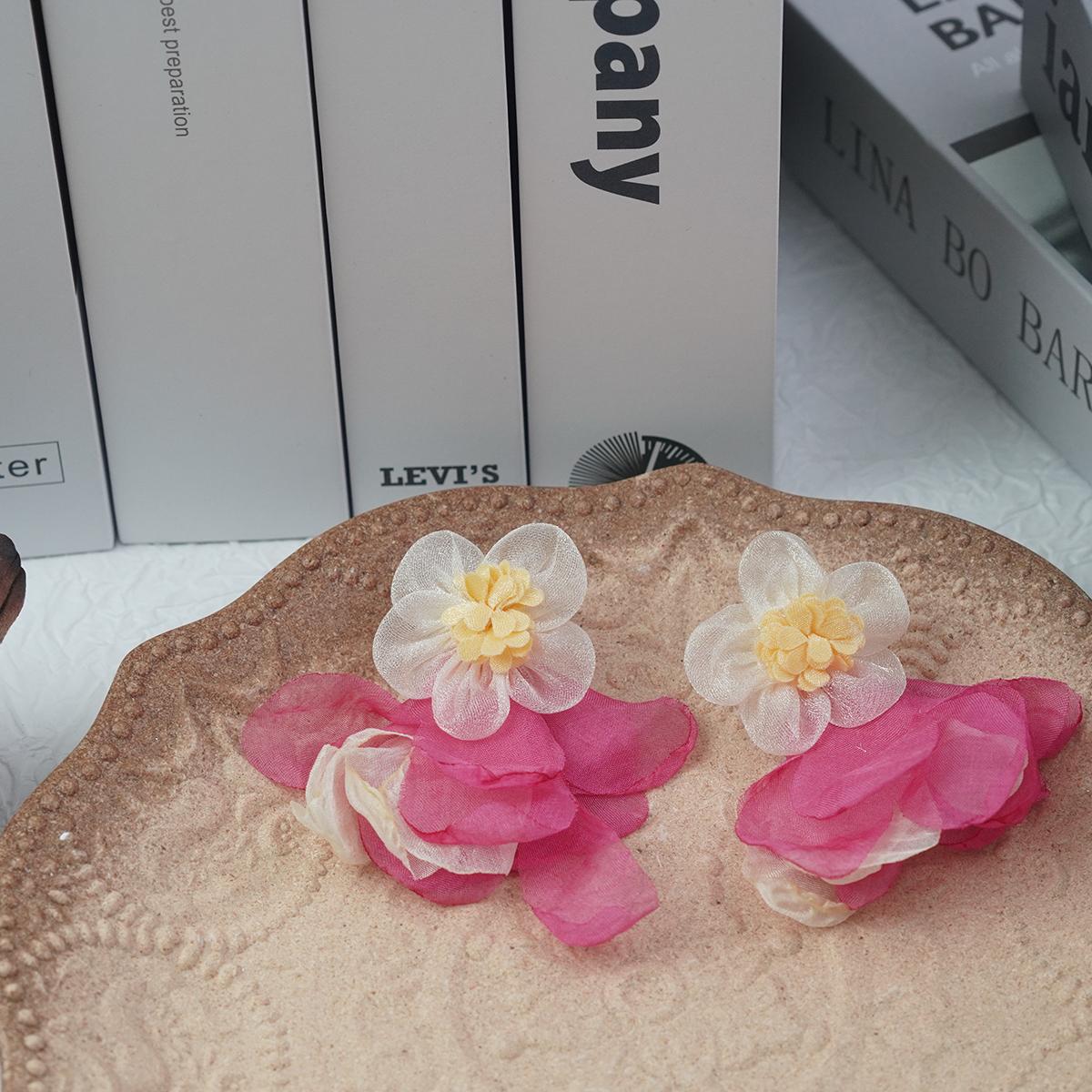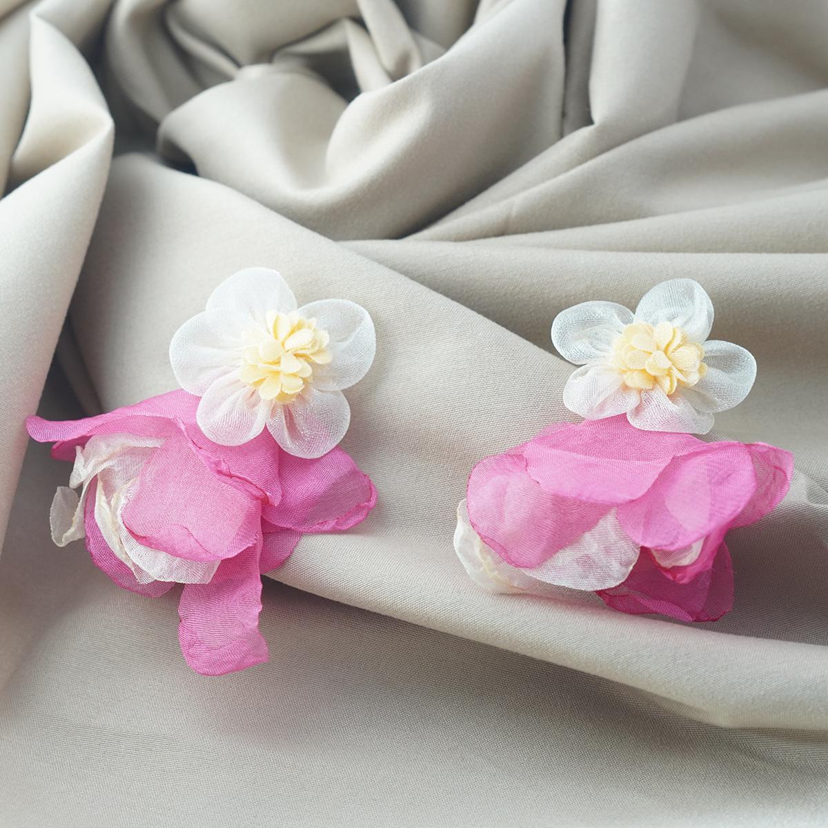 【Stud Earrings】Pink-White Floral Earrings with Lightweight Cloth Petals, Sweet & Romantic for Fashion Girls