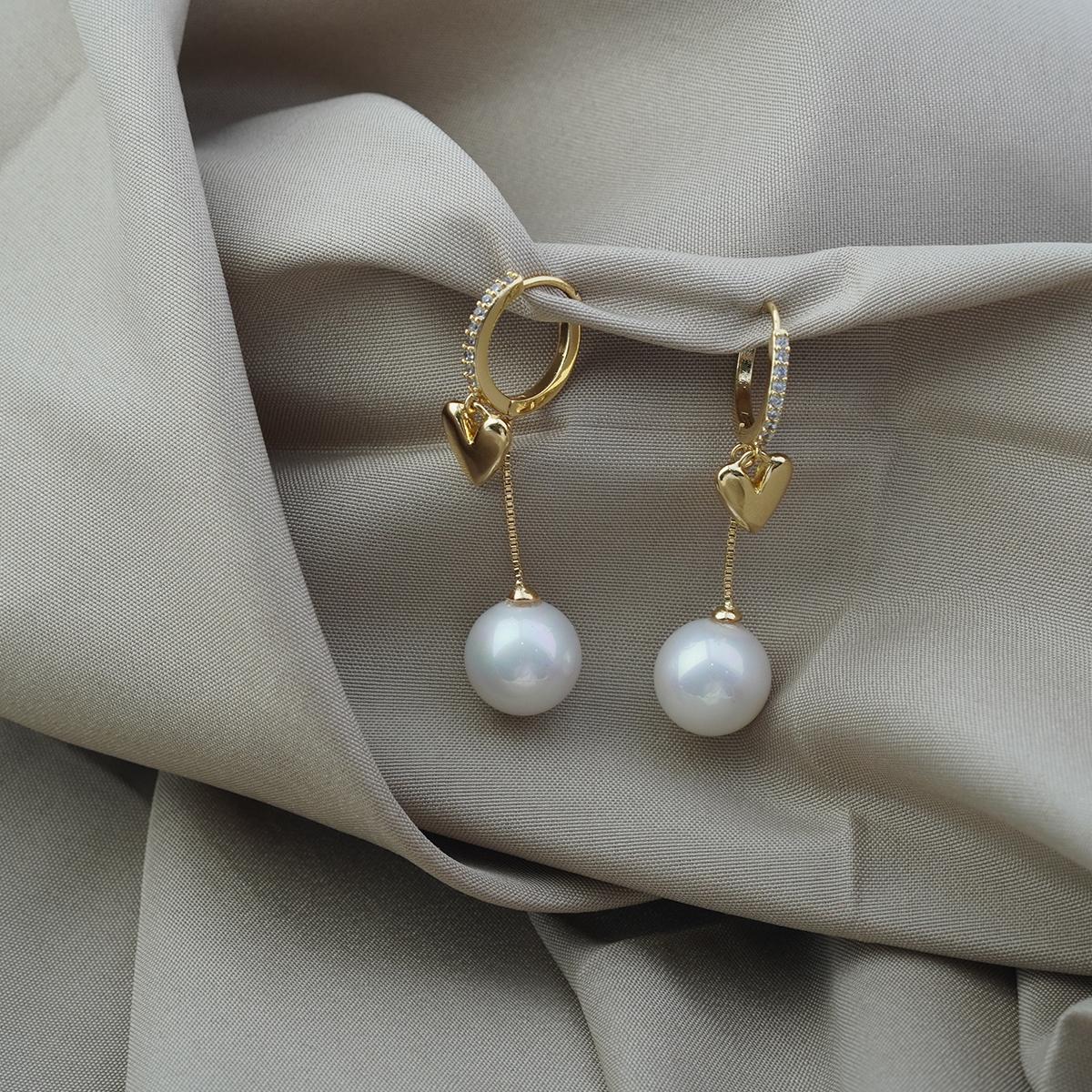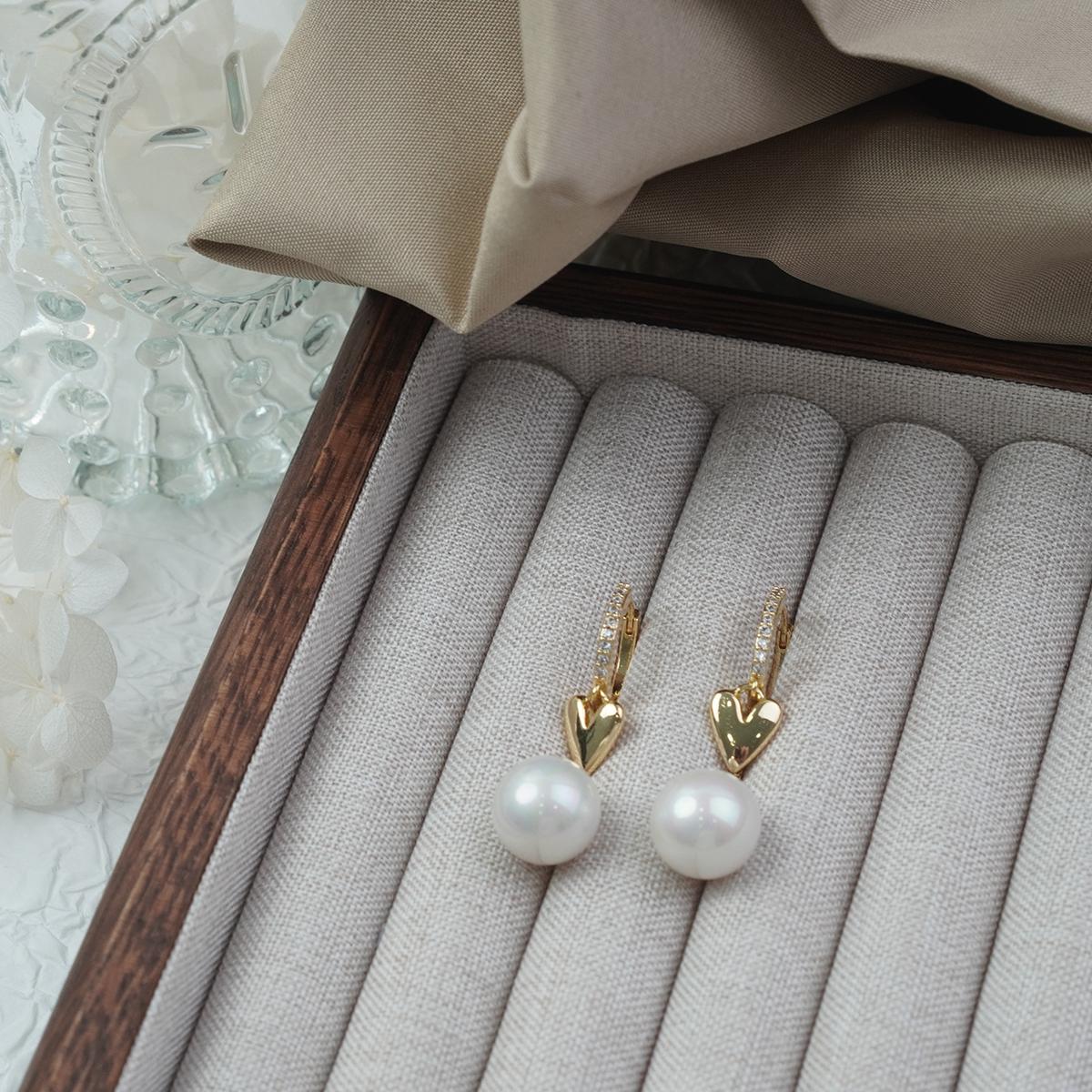 Design & Materials: These earrings feature an alloy - made structure with a charming gold finish. A heart - shaped connector links the hoop (inlaid with tiny zircon for a touch of sparkle) to a round, lustrous pearl. The Hypoallergenic needle ensures comfort.