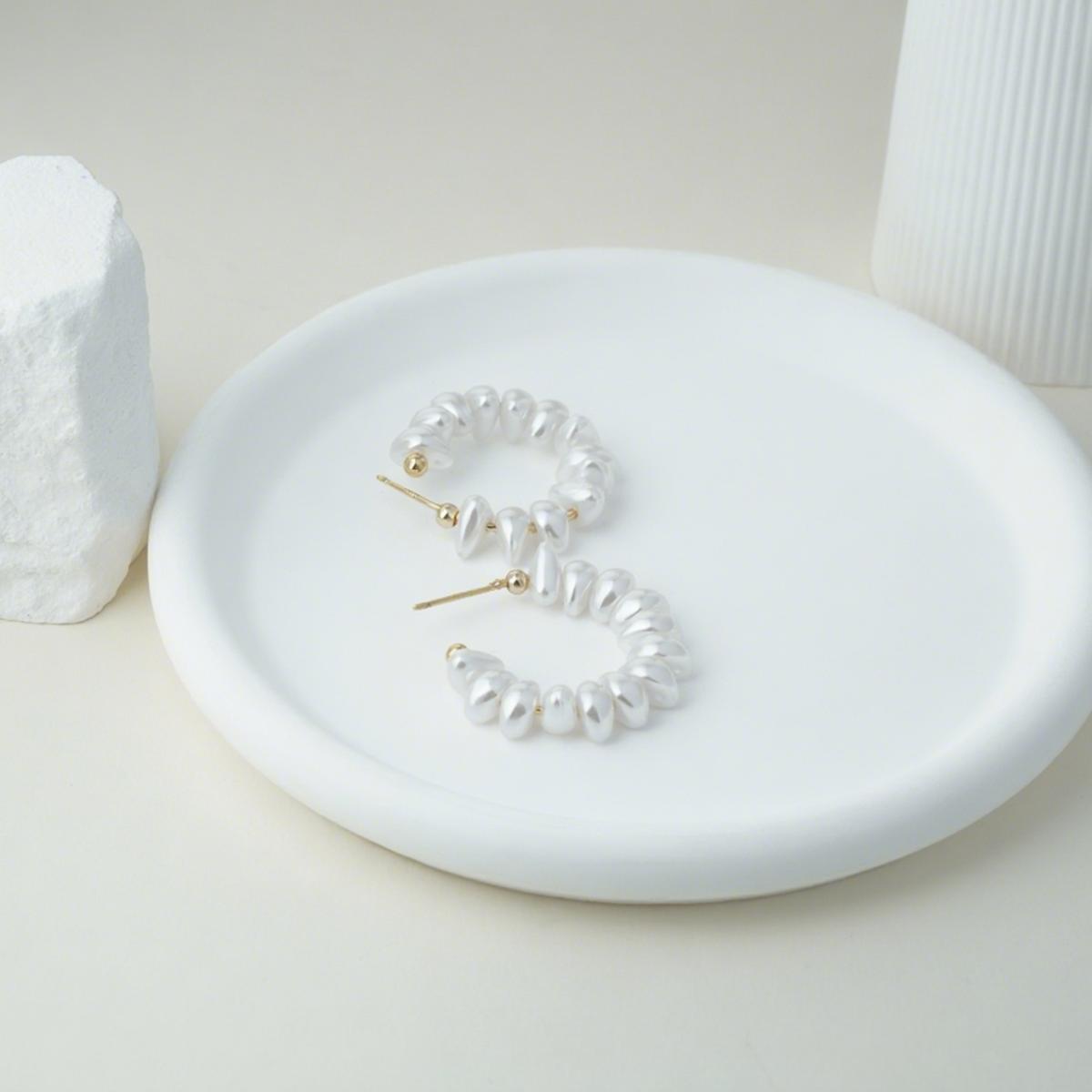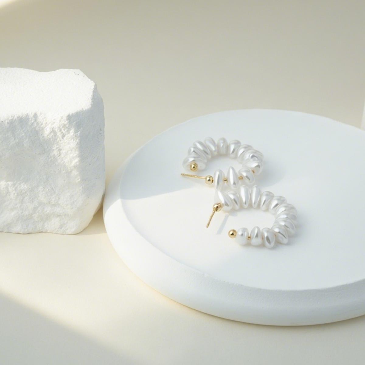 Design & Materials: These hoop earrings feature a classic circular design adorned with soft - luster pearls. The golden beads are alloy - plated for a nice look, and the ear needles are made of 925 silver, friendly to sensitive ears.