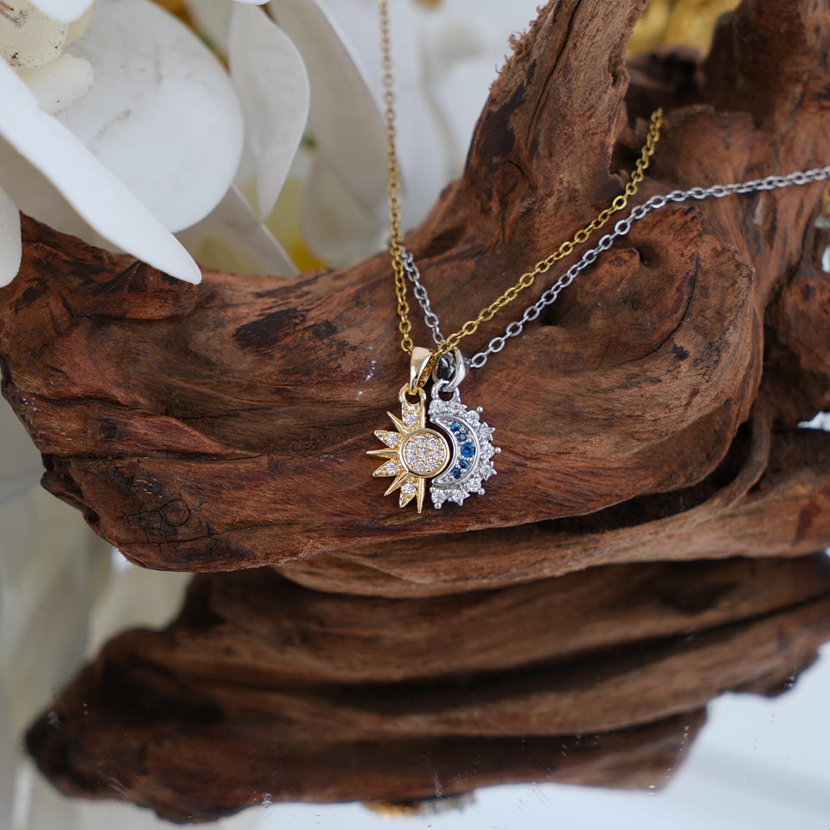 Perfect for expressing romantic individuality through its celestial theme, this piece transitions effortlessly from daytime casual to evening elegance. The dual-tone chains complement both warm and cool color palettes in clothing, making it versatile with solid-color tops, open necklines, or layered jewelry combinations. Its balanced design adds refined sophistication to everyday outfits while making a symbolic statement at special occasions.