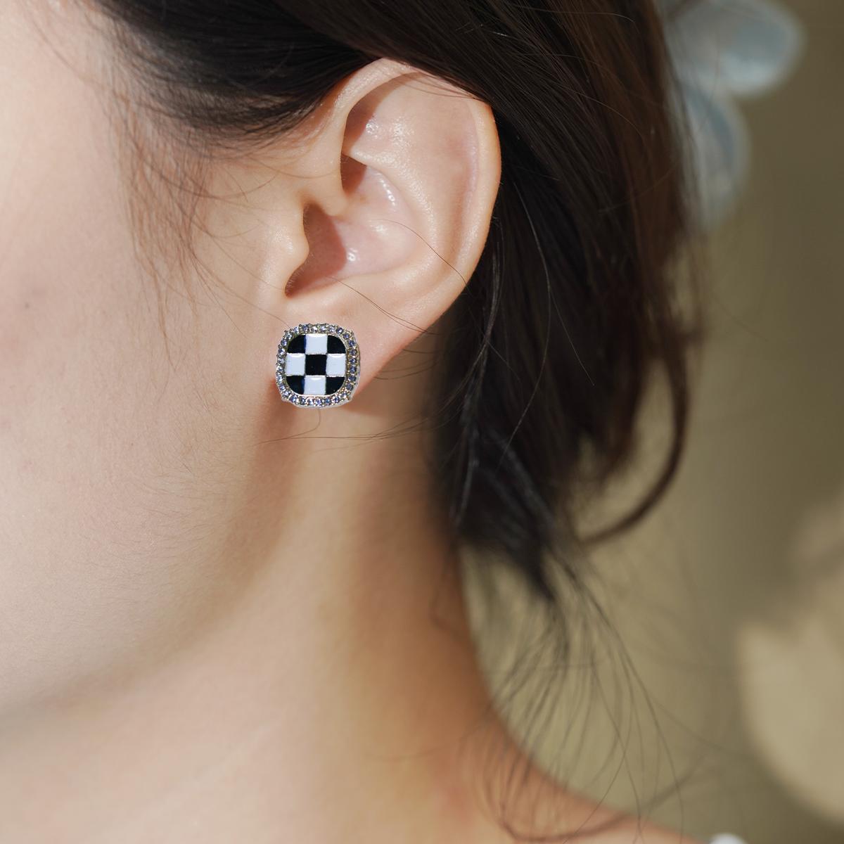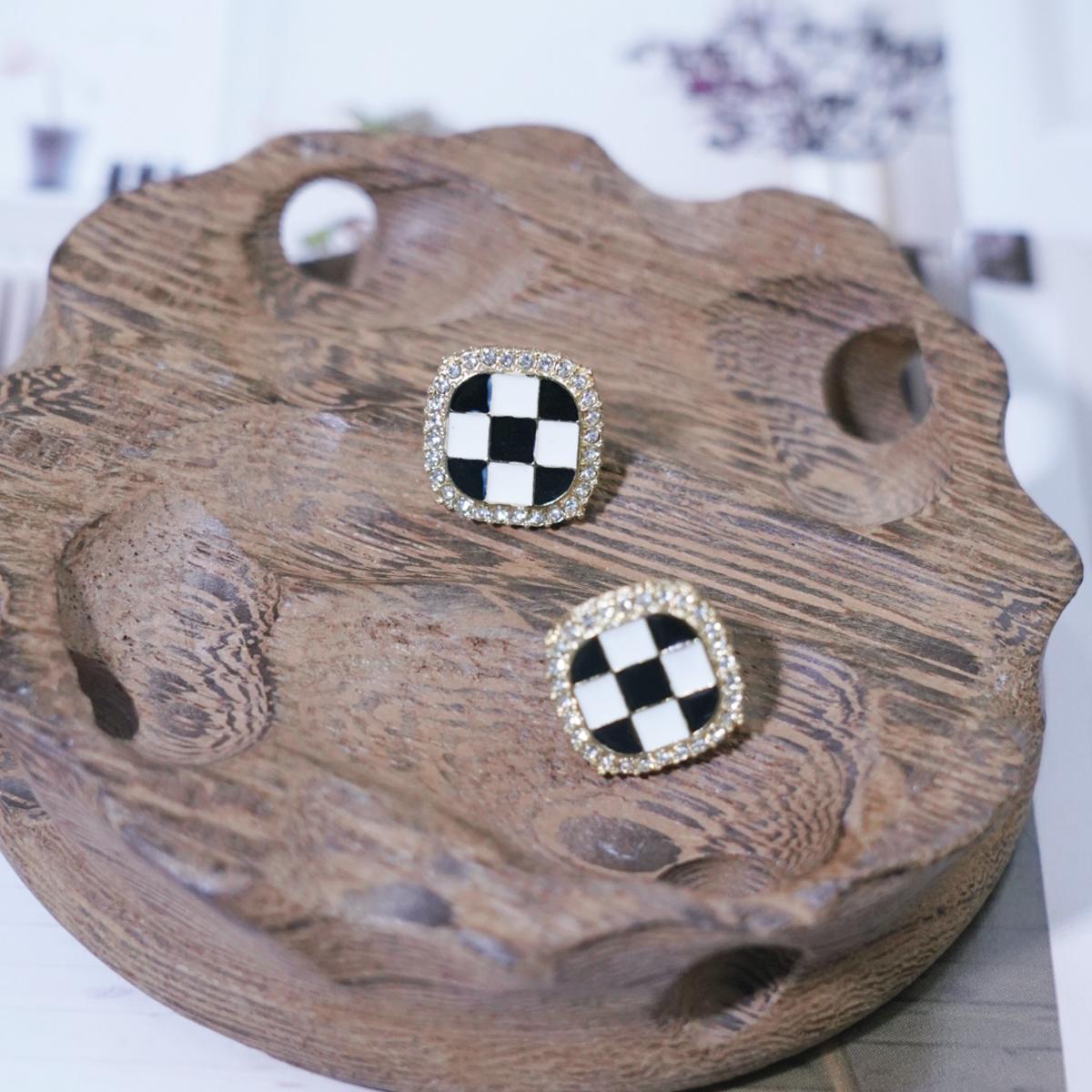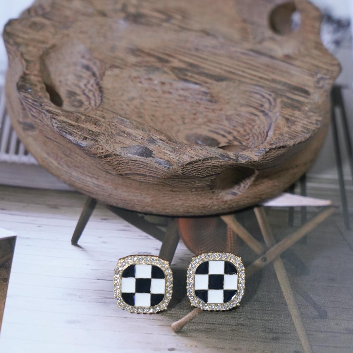 【Stud Earrings】 Checkerboard Square Earrings Crystal Halo Modern Minimalist Chic
