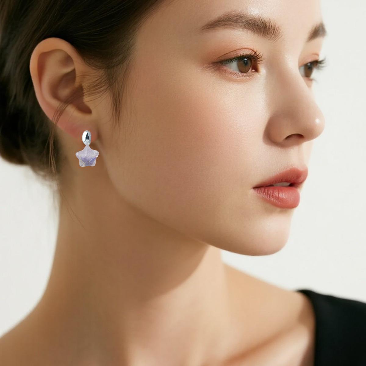 Quality: Resin stars have naturally blended colors with an iridescent effect. Silver parts are finely crafted. The secure connection between components ensures durability. These earrings are a unique, lightweight accessory for daily use, helping you stand out with their cute design.
