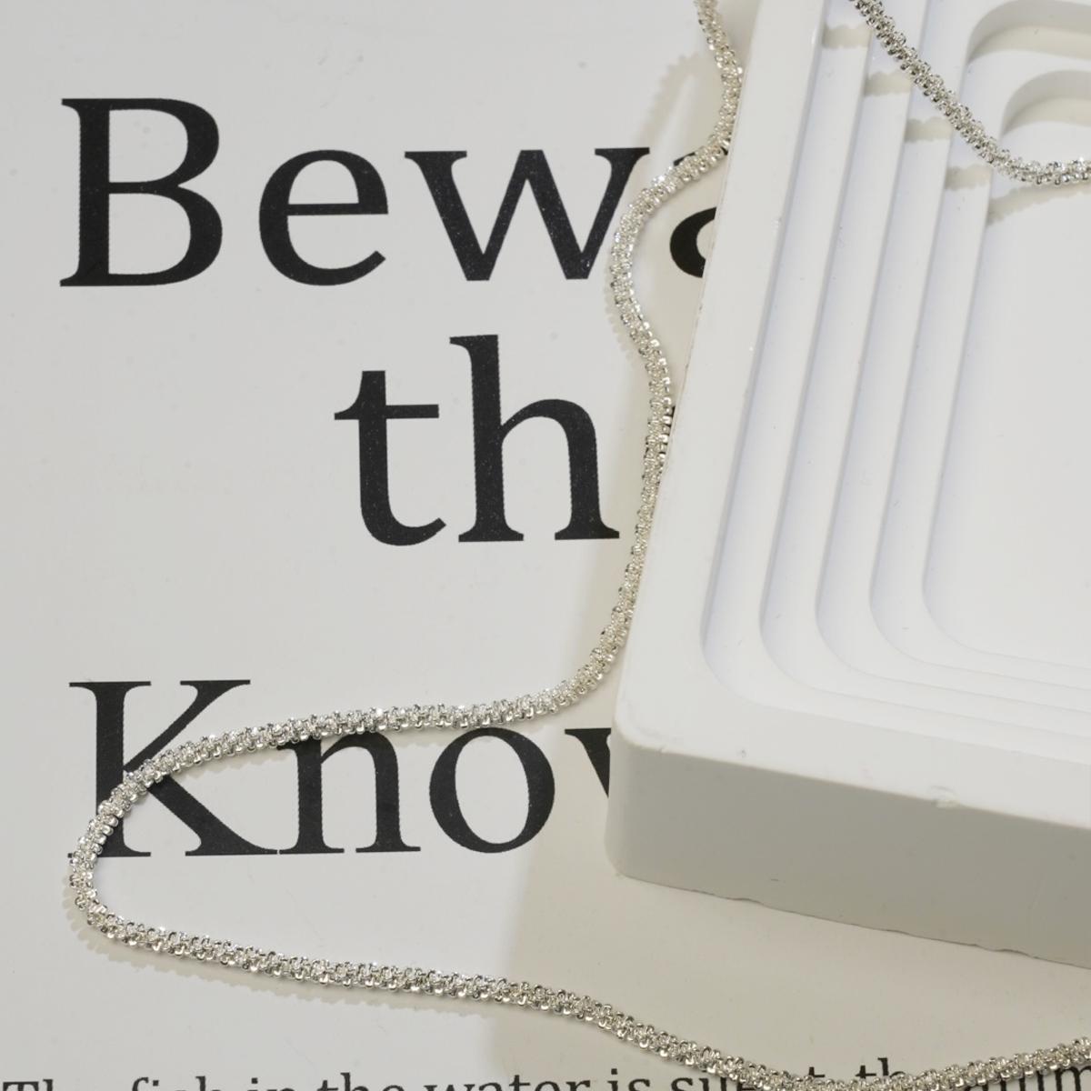 Crafted with silver - alloy, this necklace features a fine, shimmering finish. The electroplating process creates a “sparkling water” visual, adding subtle glamour. Its simple chain design keeps it timeless.