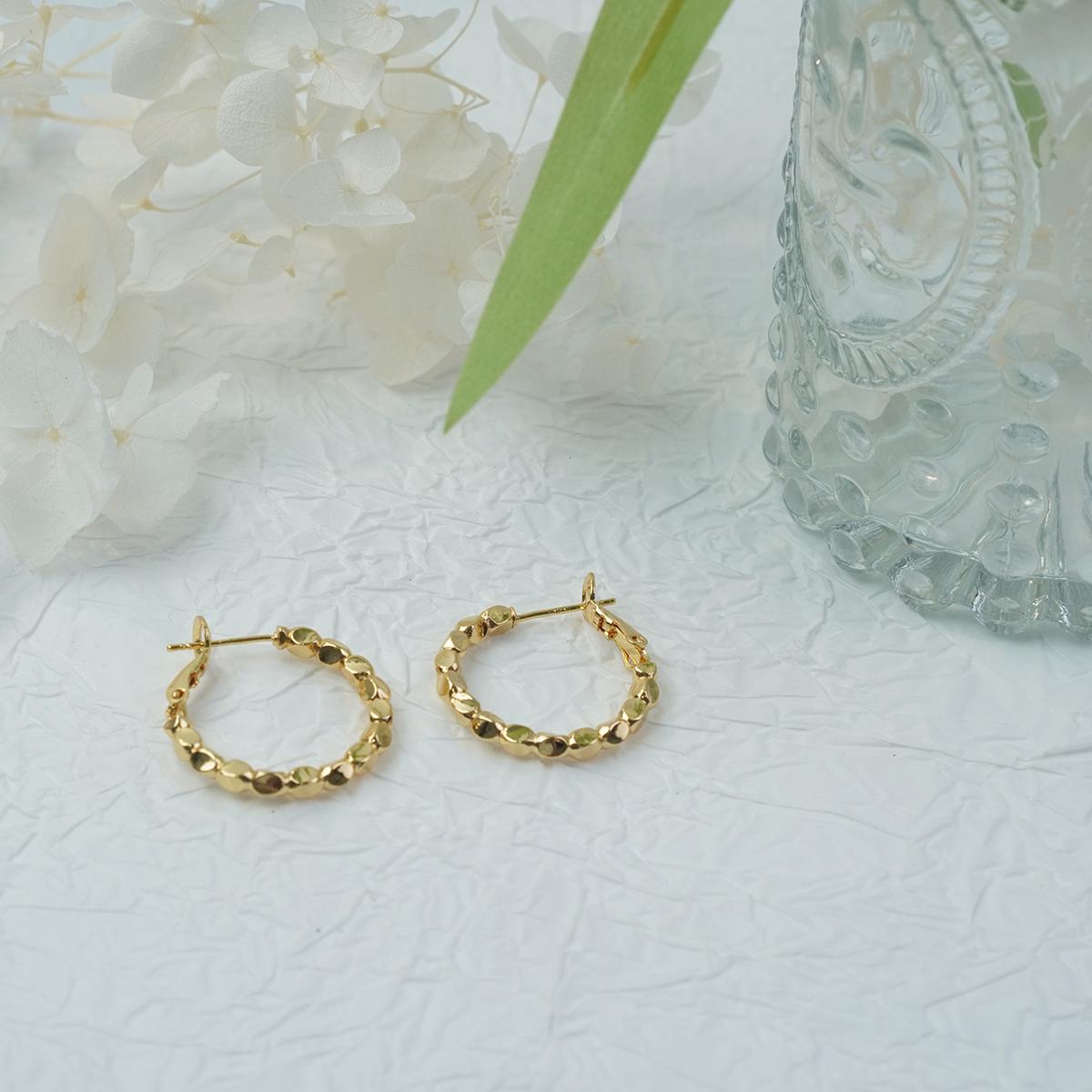 【Hoop Earrings】Alloy Gold Plated Beaded Hoop Earrings, Minimalist & Chic, Daily Essential for Women