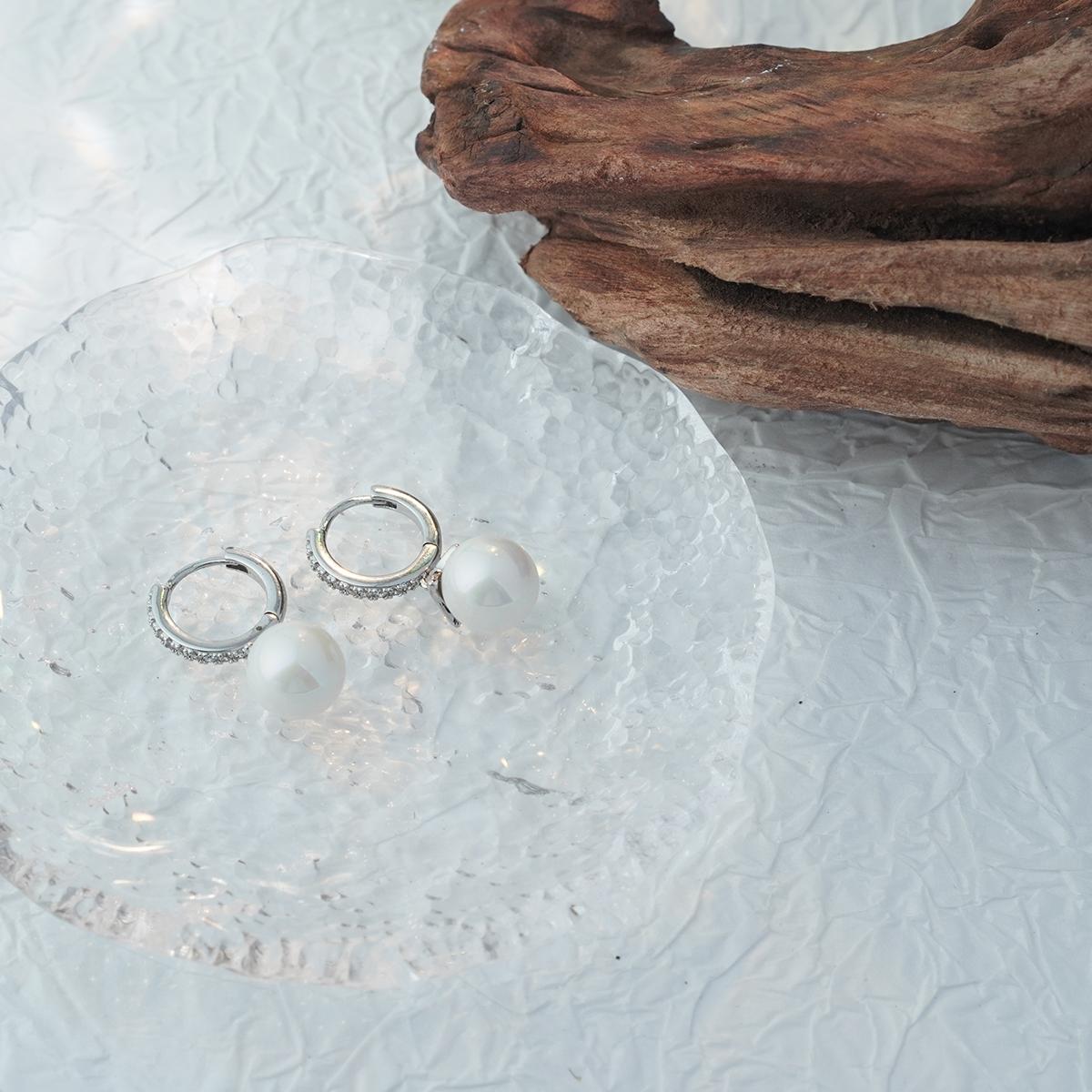 【Hoop Earrings】Alloy Silver - Plated Pearl Earrings with Zircon Inlaid, Elegant & Delicate for Women