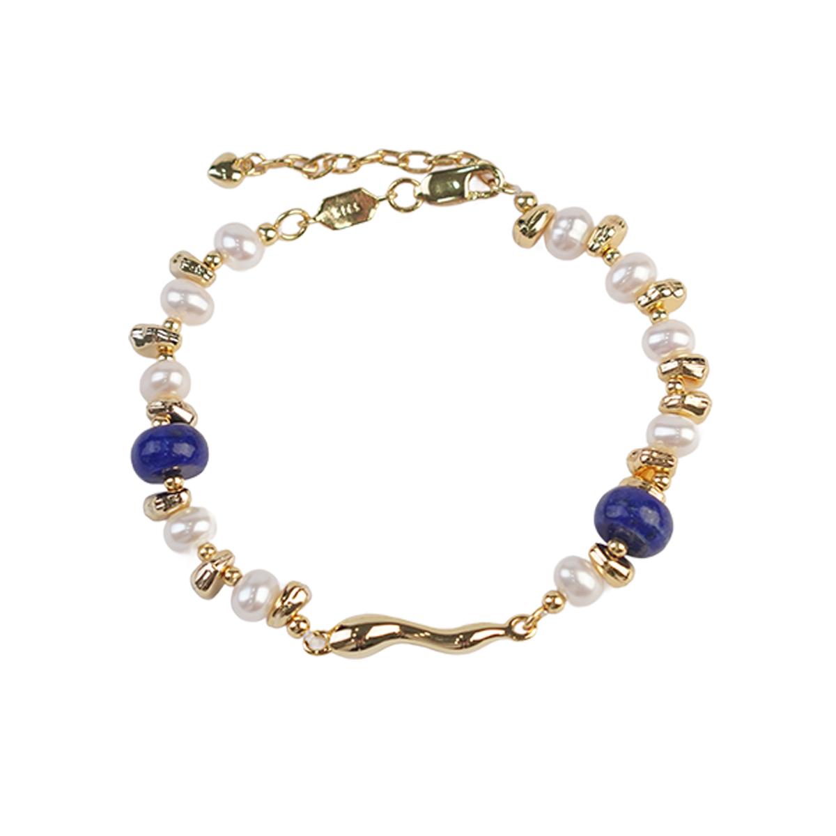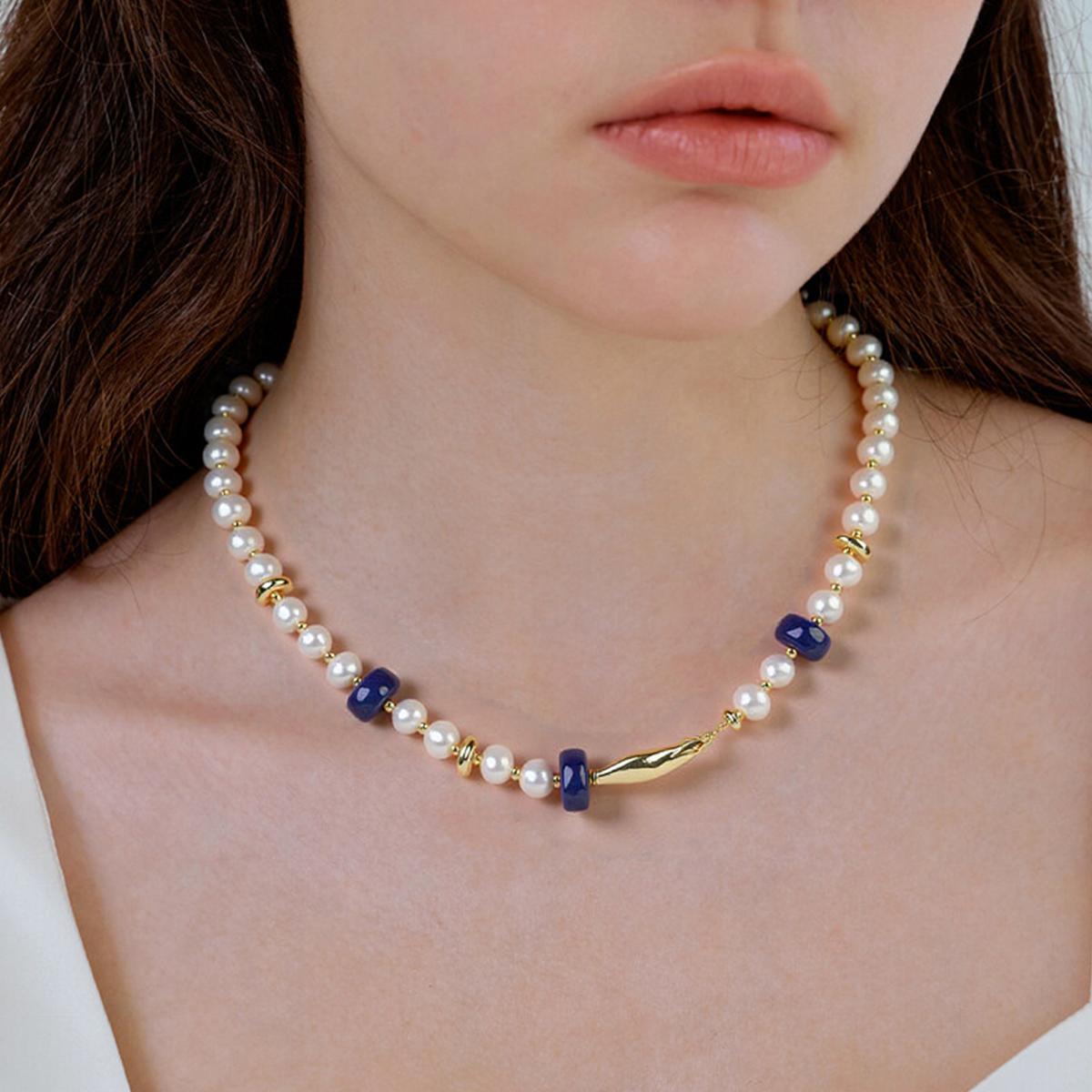 Crafted with pearls and lapis lazuli as main materials, plus silver - colored accessories. Pearls bring a gentle touch, while lapis lazuli adds deep richness. The combo fuses elegance and mystery.