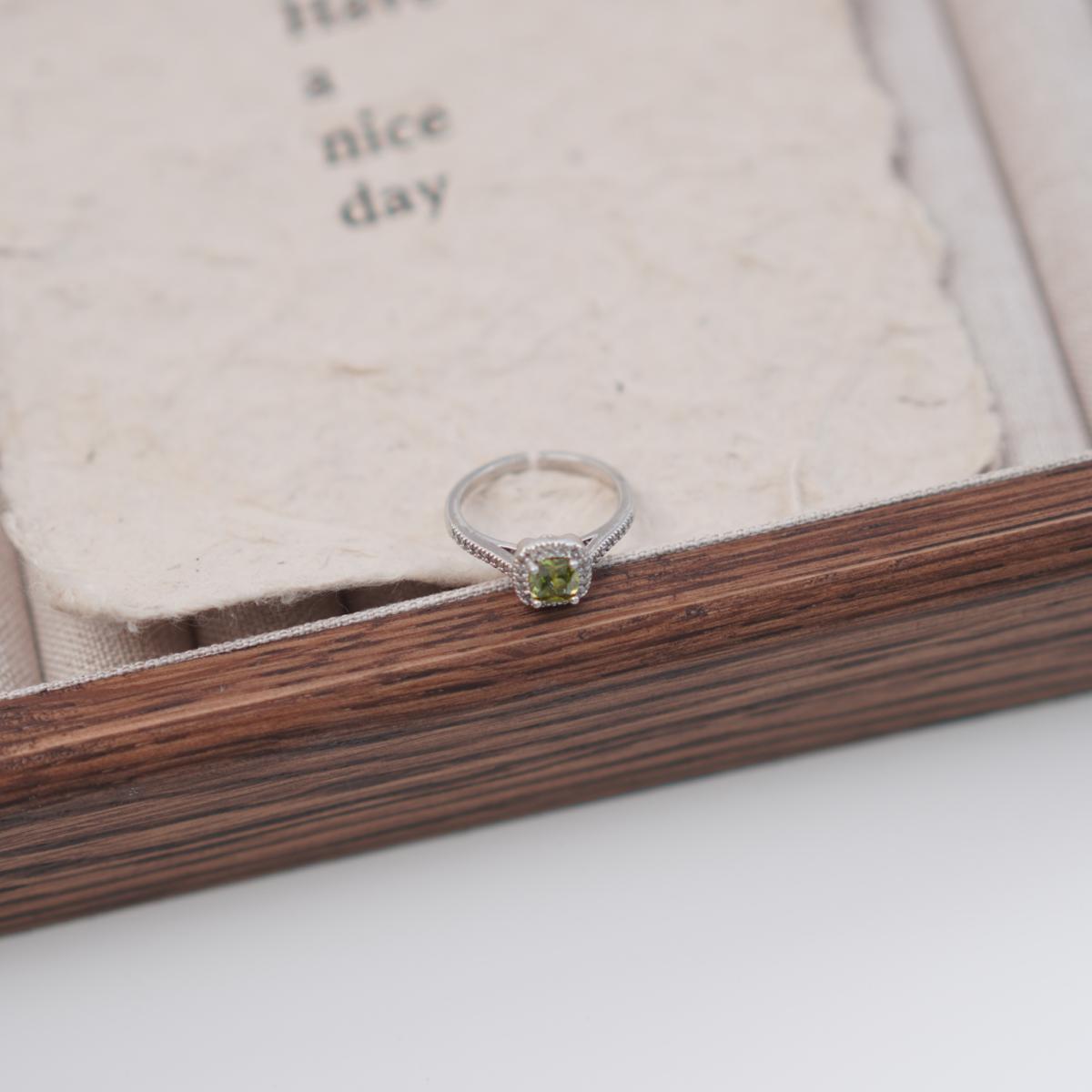 【Open Ring】Silver Plated Copper Alloy Rings with Olive Green/Yellow Zircon Center, Elegant Daily Jewelry for Women
