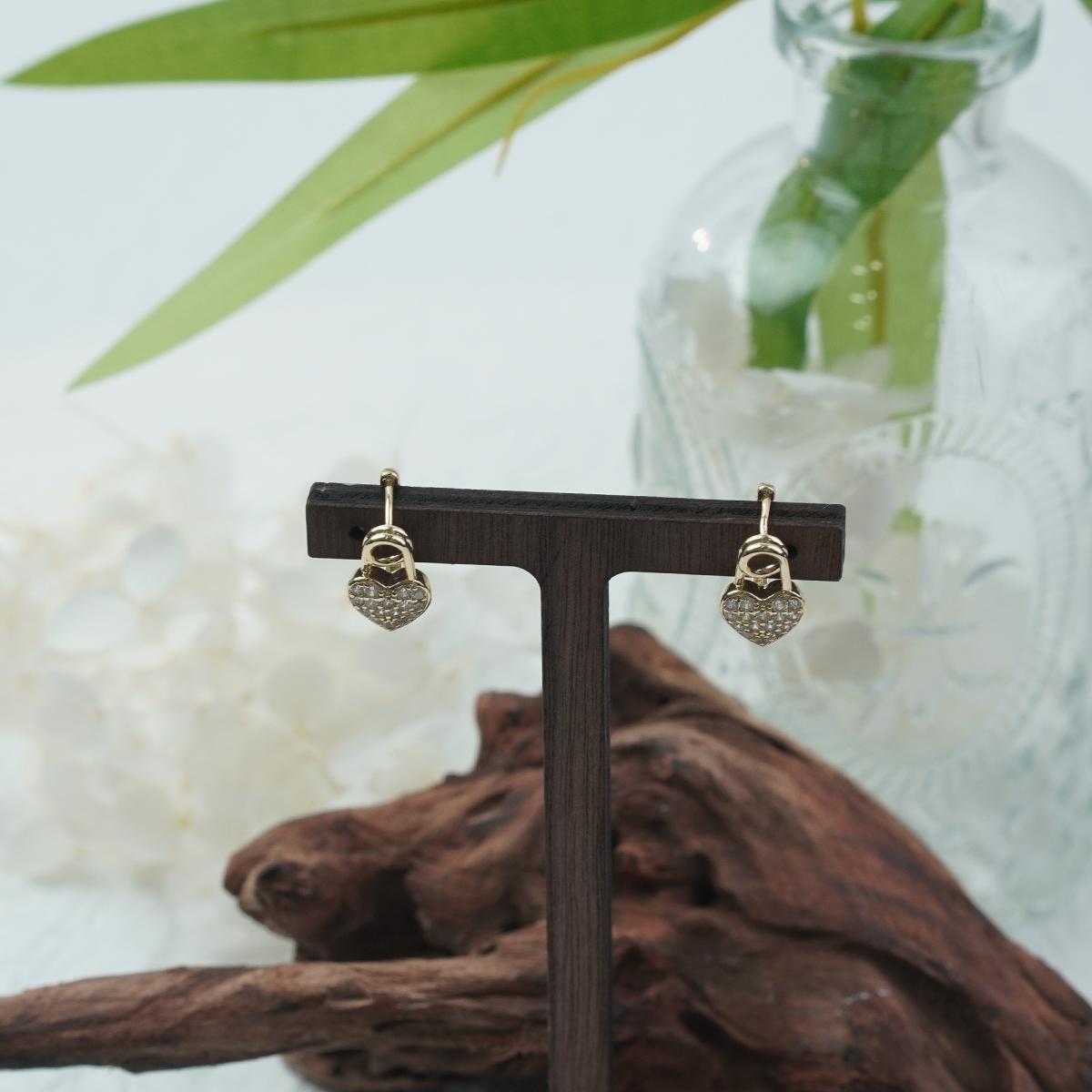 【Stud Earrings】 Heart-Shaped Crystal Earrings Gold Lock Design Dazzling Romantic Gift for Women