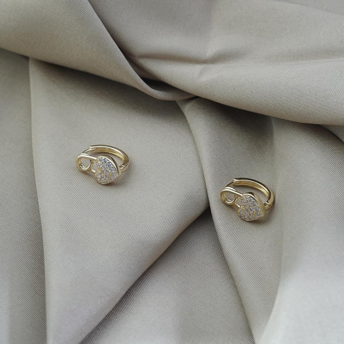 Design & Materials: A love letter in jewelry—each stud features a heart-shaped dome densely paved with brilliant round crystals ,  bordered by barely-there gold edges. Topped with an antique-inspired gold lock clasp that secures to a skin-friendly 925 silver ear hook.